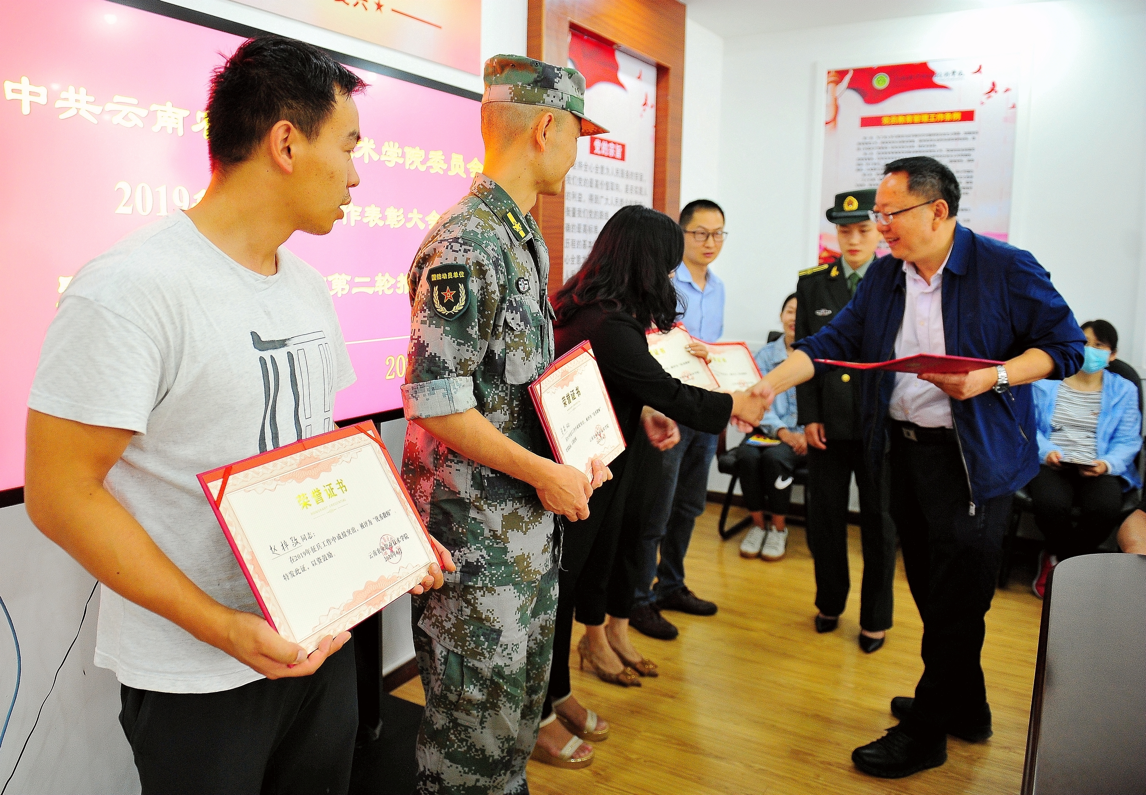 2019年在学院党委坚强领导下,各部门坚定不移、共同奋斗,取得了丰硕的成果,2020年各部门要进一步统一思想,凝聚共识,完善大学生入伍全程服务保障体系,确保入伍士兵经济上有优待,学业上有保障,工作上有出路,发展上有前途。(学生工作处供稿 文:李鑫/图:普仲凯/审核:杨筱莹/责任编辑:杨昆渝)