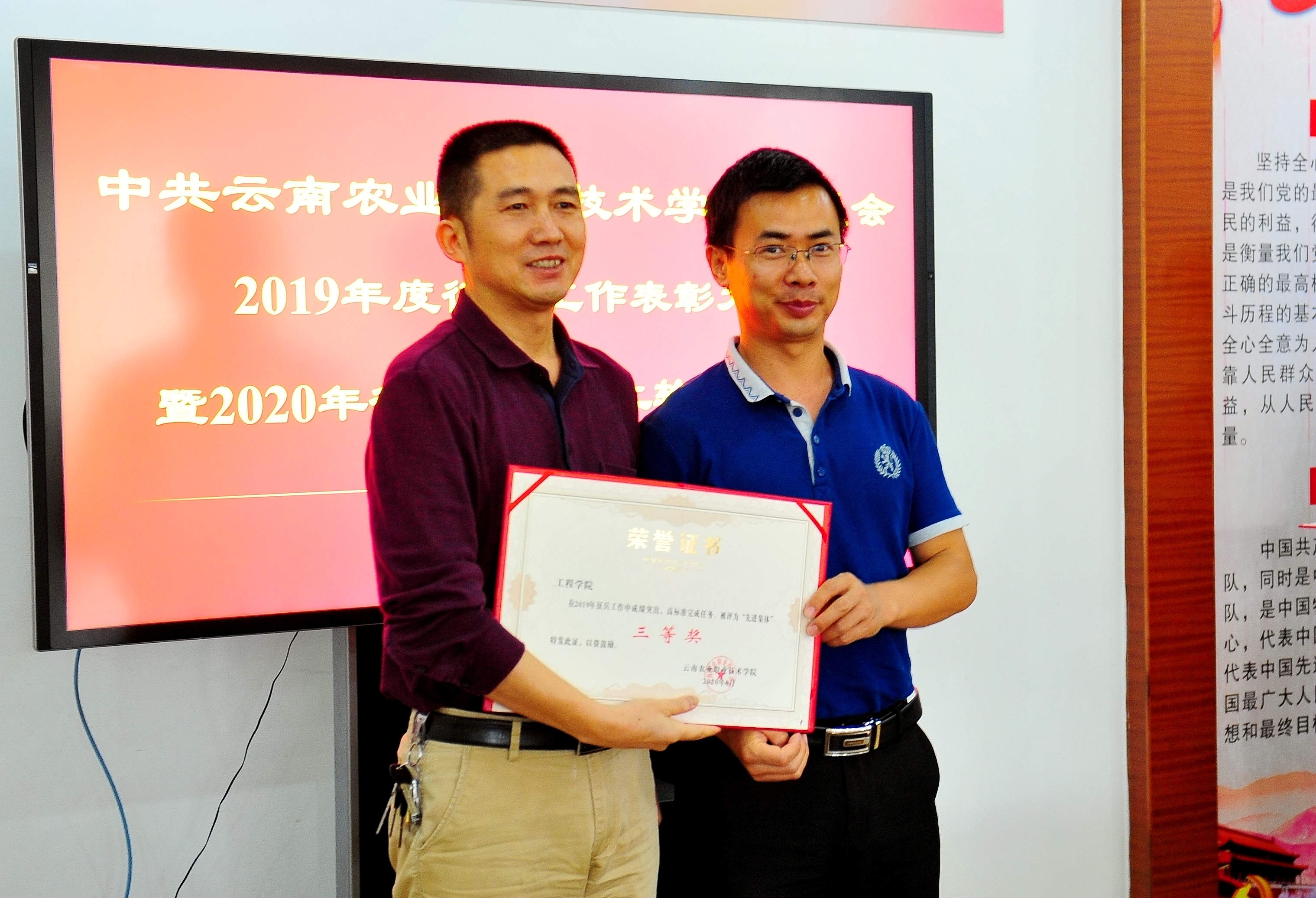 党委副书记伍学龙为工程学院颁发先进集体三等奖