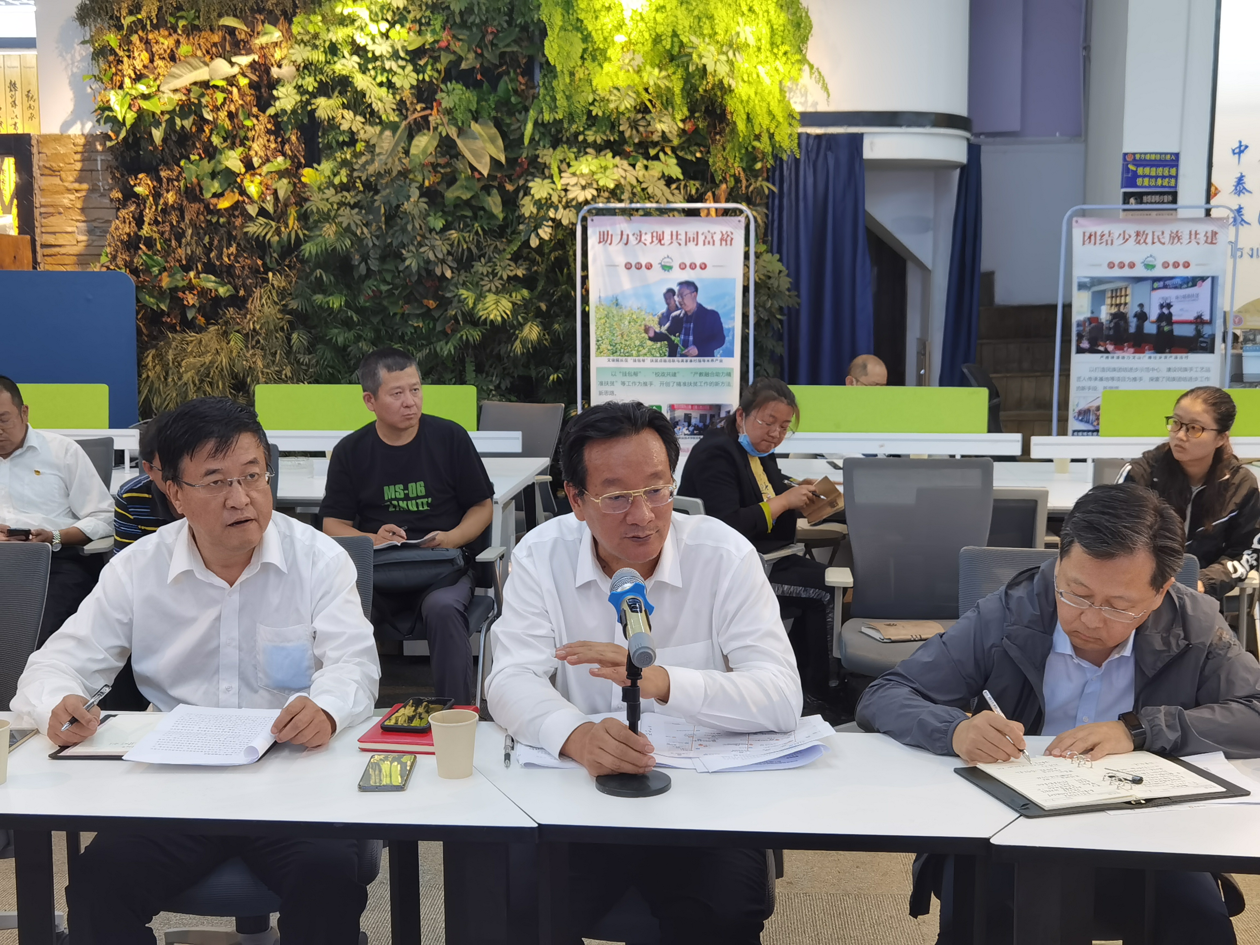 调研组各成员先后就民族团结进步示范区的打造建言献策。(产教联盟平台供稿/文:魏巍/图:魏巍/审核:王军明/责任编辑:普仲凯)