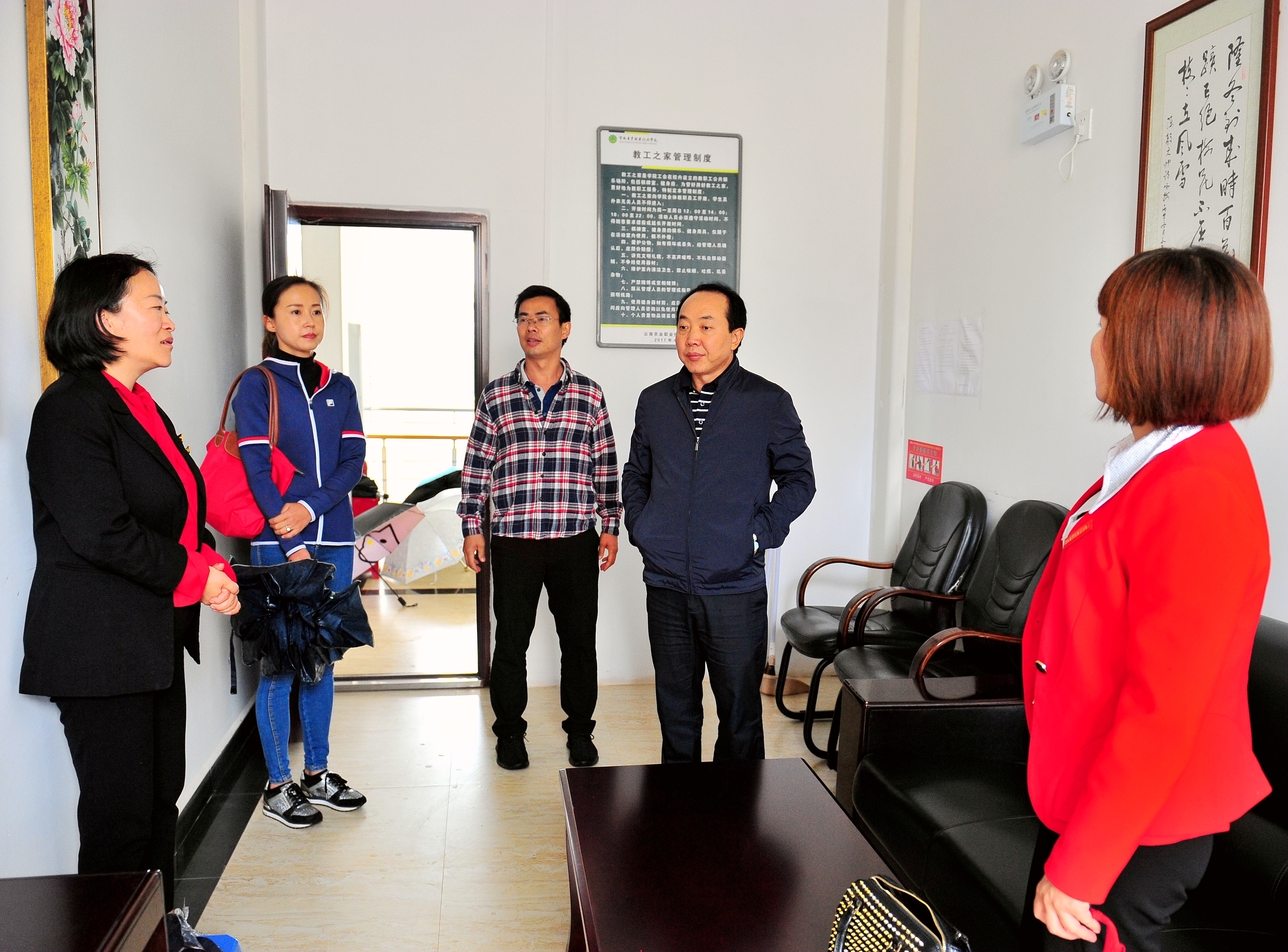 下午,调研组一行在党委副书记伍学龙同志陪同下,兴致勃勃地参观了校史走廊、职工之家、实习农牧场、众创空间等,对学院工会立足学院农耕文化特色,举办富有特色的职工活动,凝心聚力谋发展给予了积极的肯定,并表示下一步将大力支持学院工会工作。