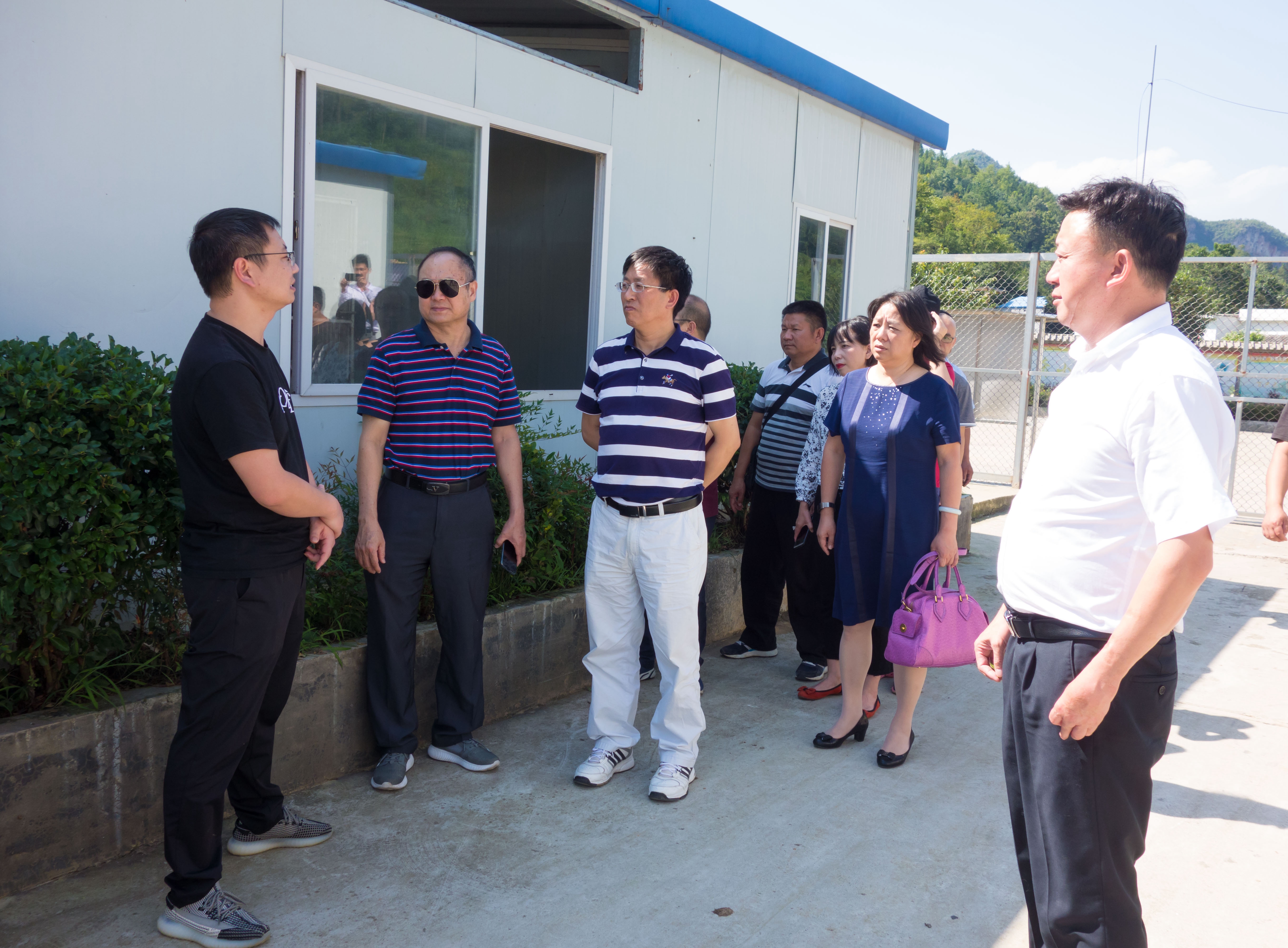 (图一)新普科技股份有限公司麻剑雄副总经理介绍红星村长毛兔养殖情况