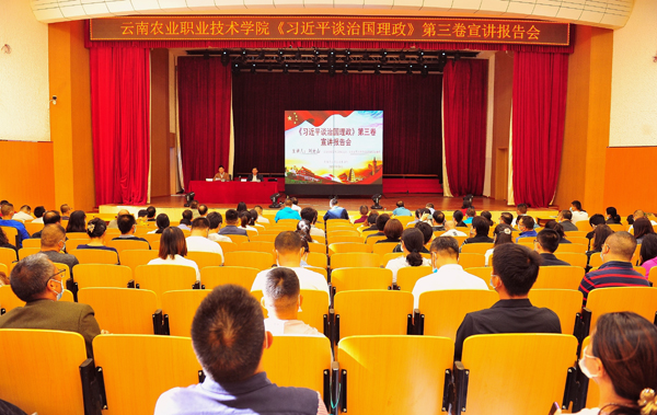 通知中心刘沧山教授以《认真学习领会<习近平谈治国理政>第三卷精神,努力做到用科学理论武装头脑指导实践推进工作》为题,围绕学习《习近平谈治国理政》第三卷的重要性;《习近平谈治国理政》第三卷19个专题的主要内容;提高认识、统一思想,不断开创工作新局面三个方面为大家带来的精彩讲授。他结合世界百年未有之大变局、中华民族伟大复兴战略全局的大背景,深入解读了《习近平谈治国理政》第三卷的重大意义,并与大家分享科学系统的学习方法,并对学院贯彻落实习近平总书记关于教育的重要论述和教育工作的指示精神,争做“四有好老师”,当好“四个引路人”,坚守“四个相统一”,强化师资队伍建设,深化思想政治工作提出了意见建议。刘教授的讲解理论联系实际,内容丰富,见解精辟,深入浅出,对于我院全体教职员工充分认识学习《习近平谈治国理政》第三卷的精髓要义,用党的创新理论武装头脑、指导实践、推动工作具有重要作用。