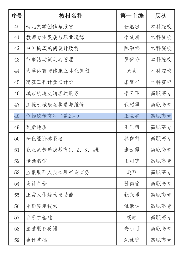 通知中心近日,由我院教师王孟宇教授主编的《作物遗传育种》(第2版)获评“云南省普通高等学校优秀教材”,实现了我院获云南省普通高等学校优秀教材上的突破。