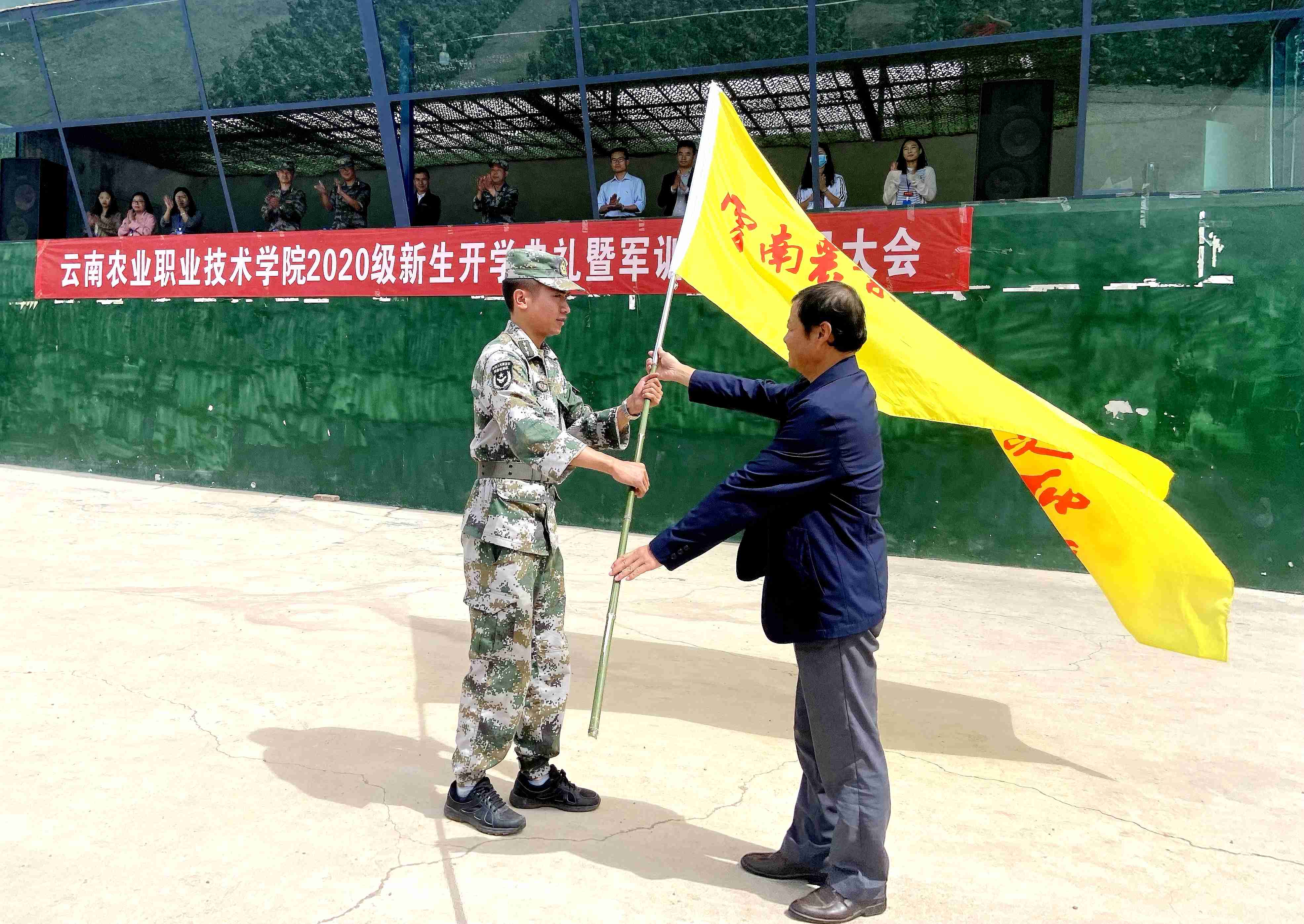 最后,雷衡副院长向军训团授旗,典礼在庄严的歌声中圆满落幕。
