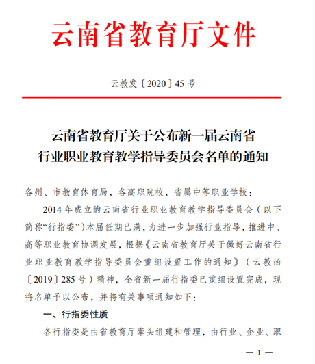 通知中心根据《云南省教育厅关于公布新一届云南省行业职业教育教学指导委员会名单的通知》通知,在全省34个新一届行业职业教育教学指导委员会(以下简称行指委)中,学院21位教师入选了农业、食品工业、生物技术、食品药品、林业、工业和信息化、财政、测绘等11个行指委。
