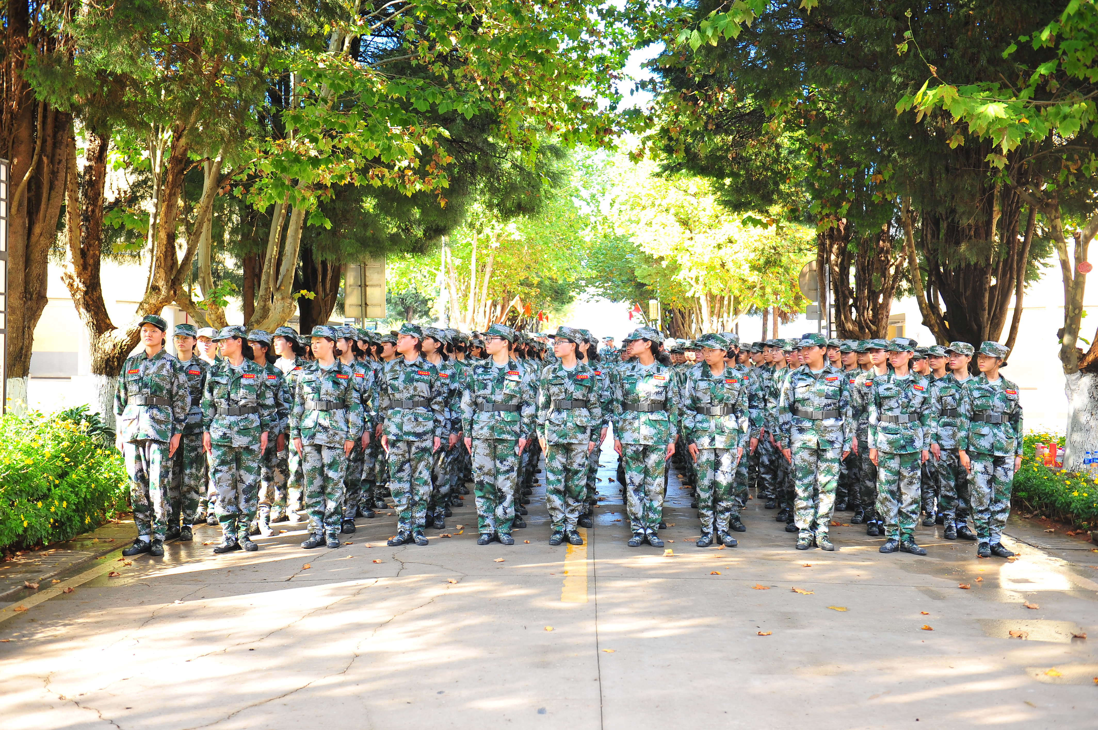 正午时分的军训依旧还是最难熬的,教官的严厉其实并不可怕,可怕的还是天上那颗硕大的太阳。他们站在这炎炎烈日之下,火辣辣的太阳光好像穿透了头顶的迷彩帽,直照在他们身上。新生们一动不动的站着军姿,汗水从额头顺着头发留下来,背后的衣服也早已被汗水浸湿,但他们仍然如同一颗青松,巍然不动。