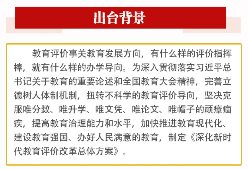 《深化新时代教育评价改革总体方案》全文如下。