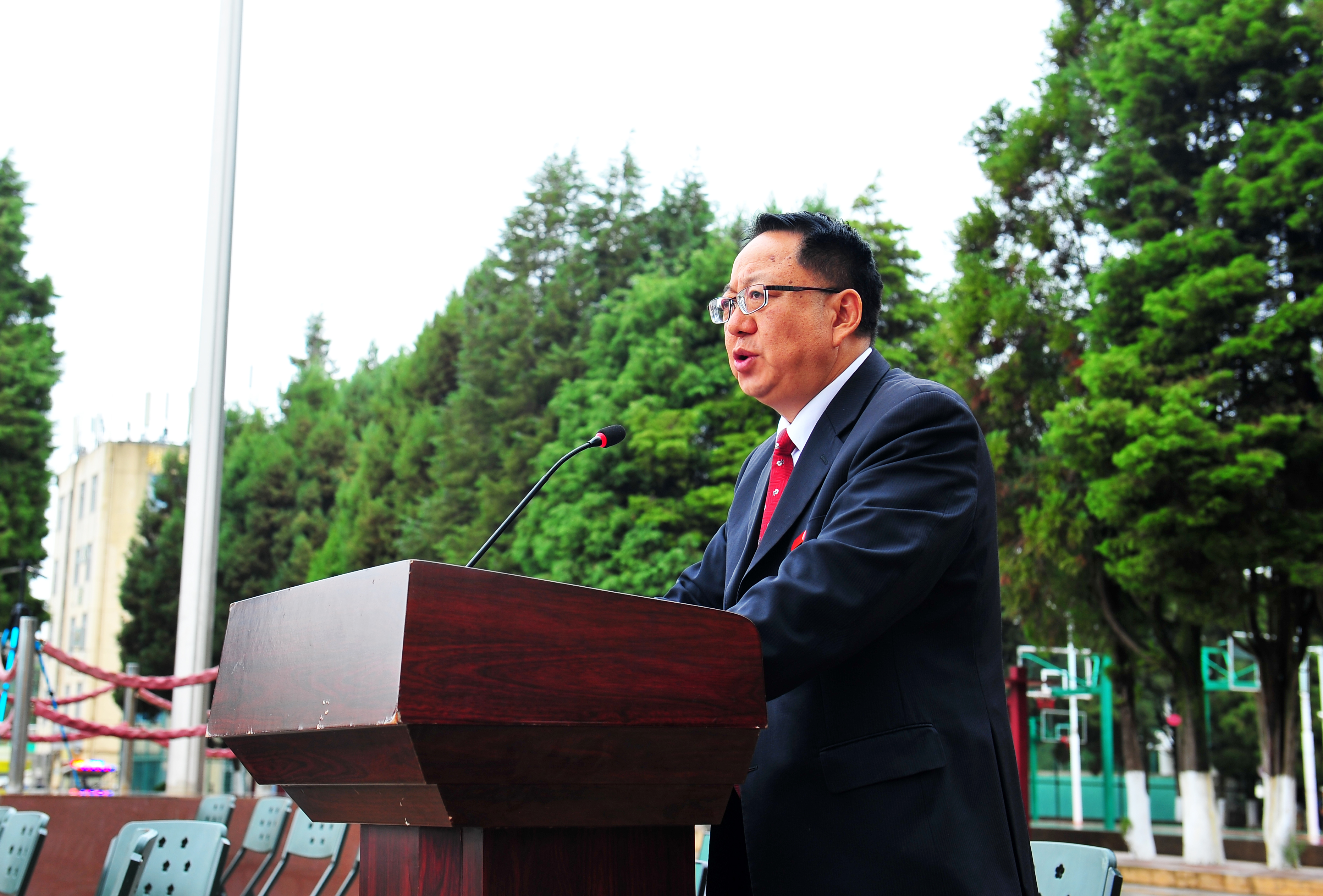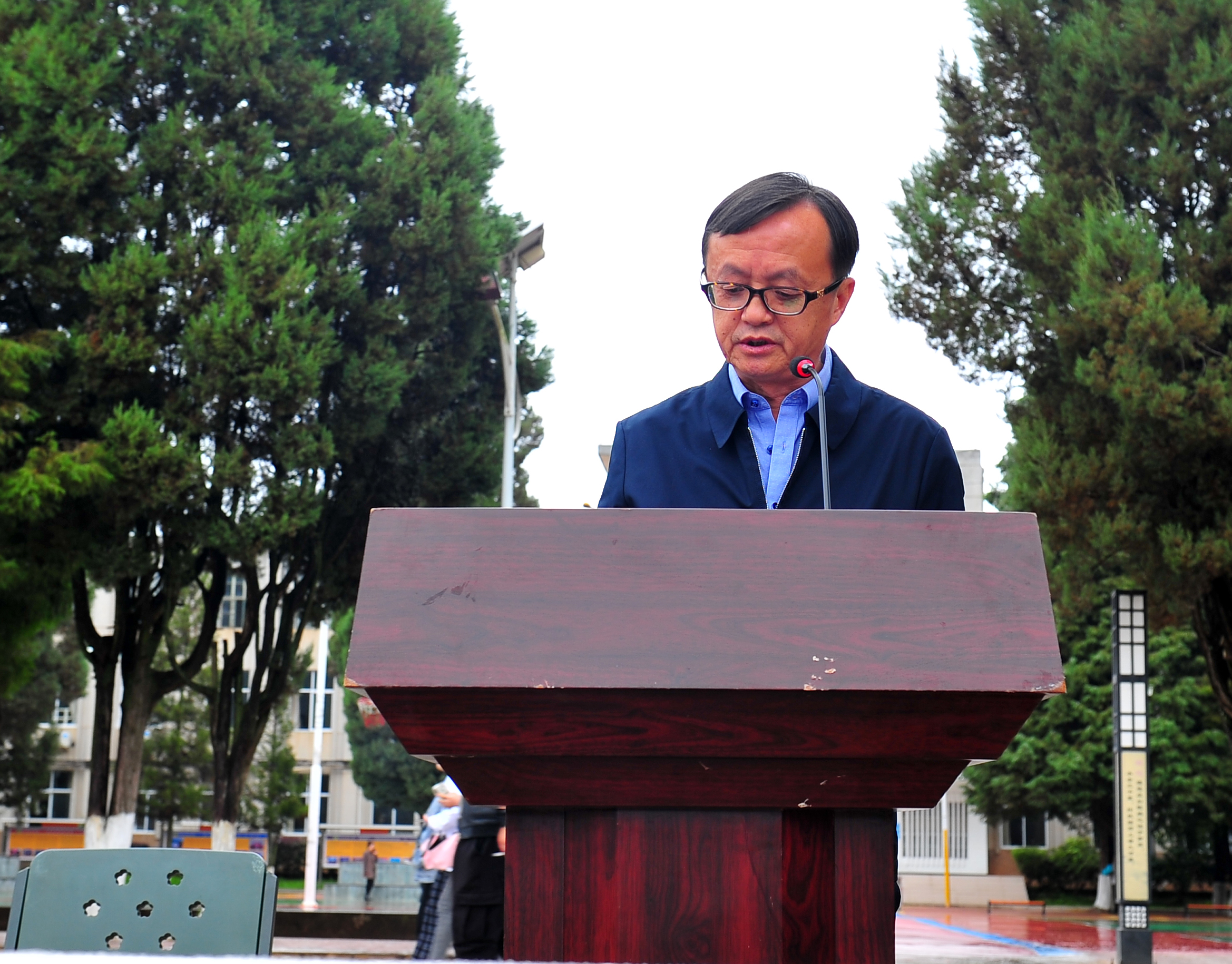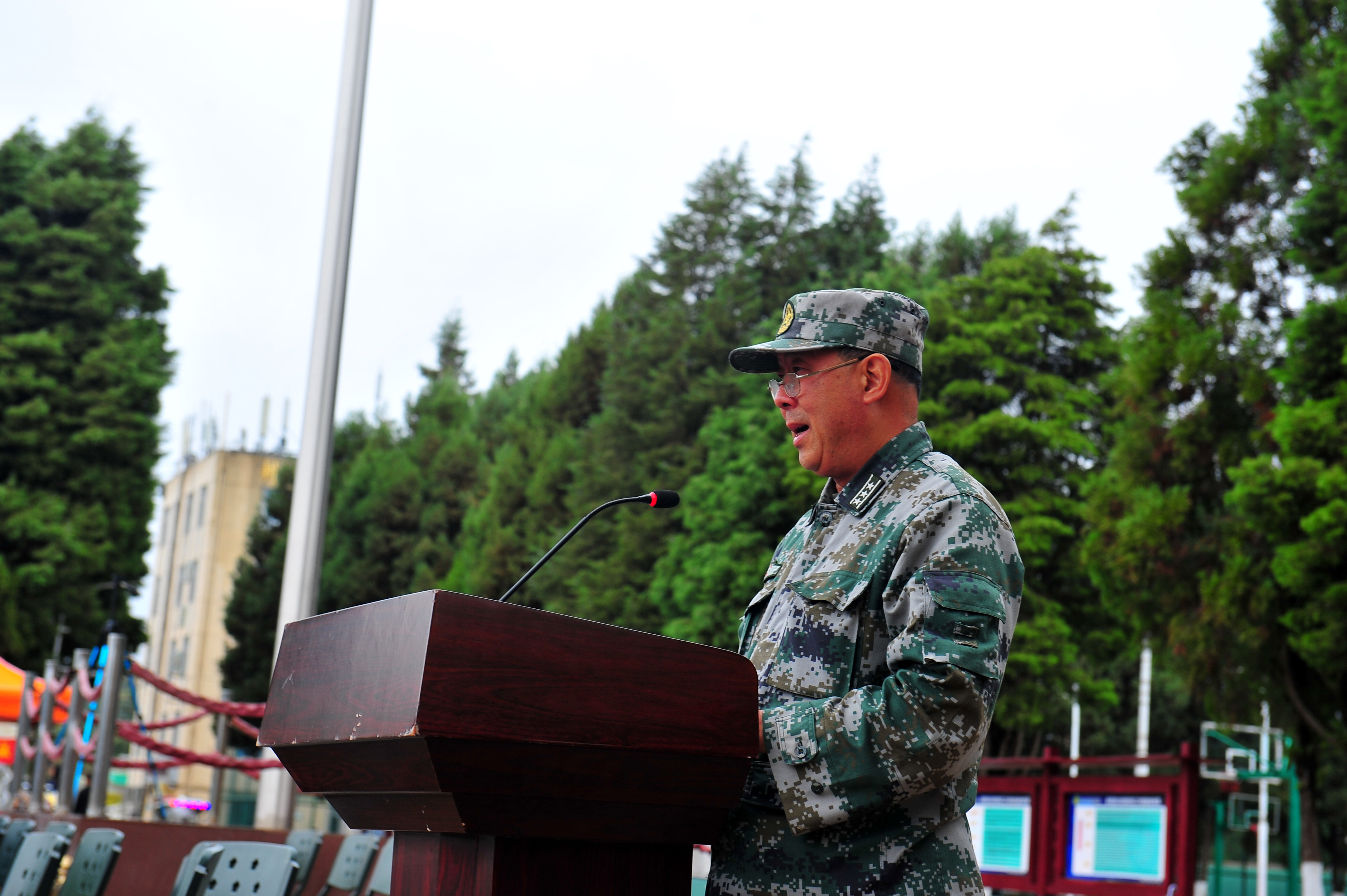 昆明兵站学生军训基地领导杨锡光上校讲话,杨上校肯定了同学们的军训成果,对同学们表示了祝贺,并对同学们寄予了崇高的期望,希望同学们今后的学习、生活中时刻保持高昂的精神状态。