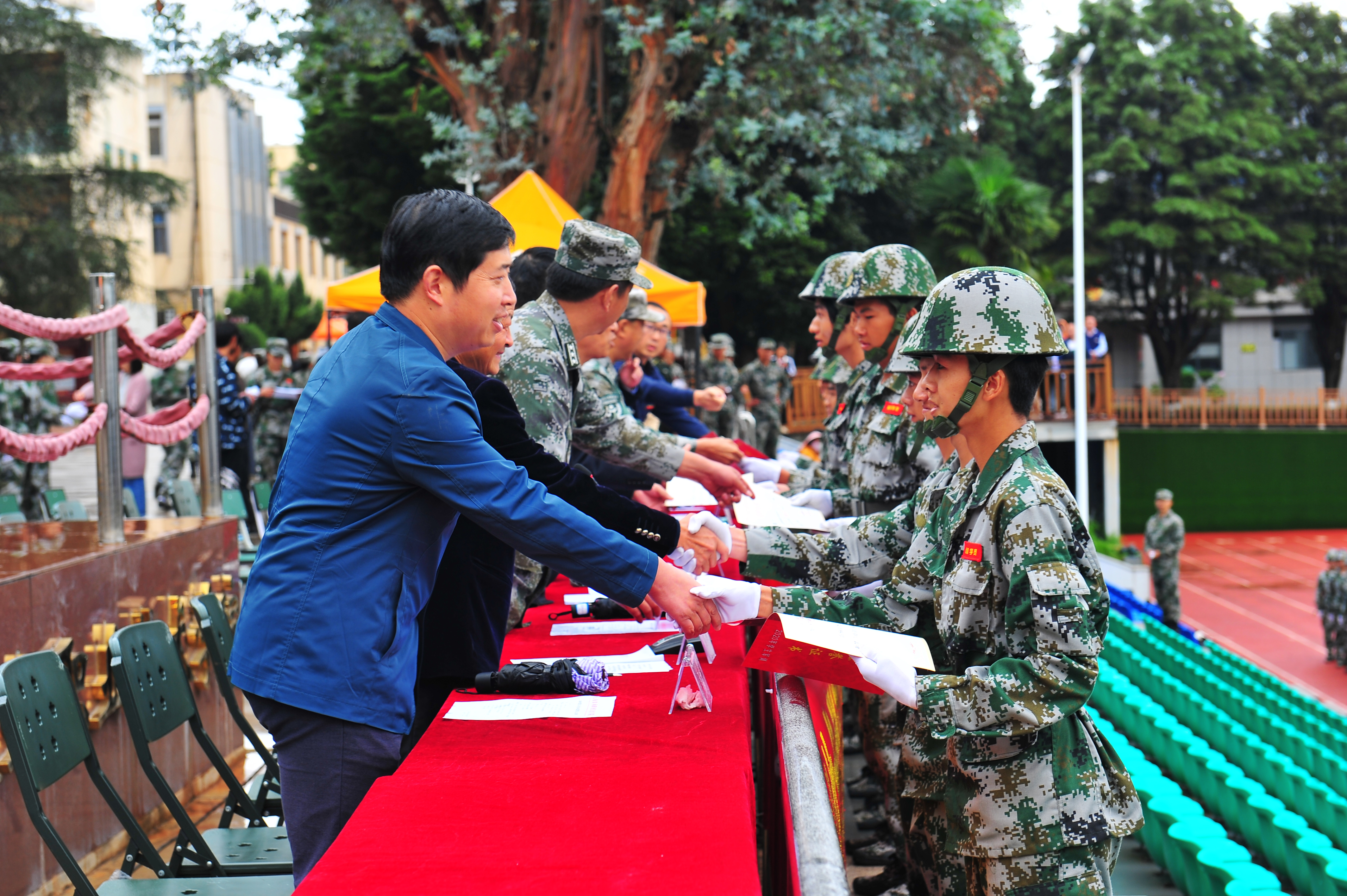 通知中心10月15日下午,学院在小哨校区足球场举行2020级新生军训结业典礼暨表彰大会。昆明兵站杨锡光上校、学院党政领导、各职能部门负责人、各二级学院副科级以上领导干部,全体新生班主任、驻训工作人员等参加大会。大会由雷衡副院长主持。
