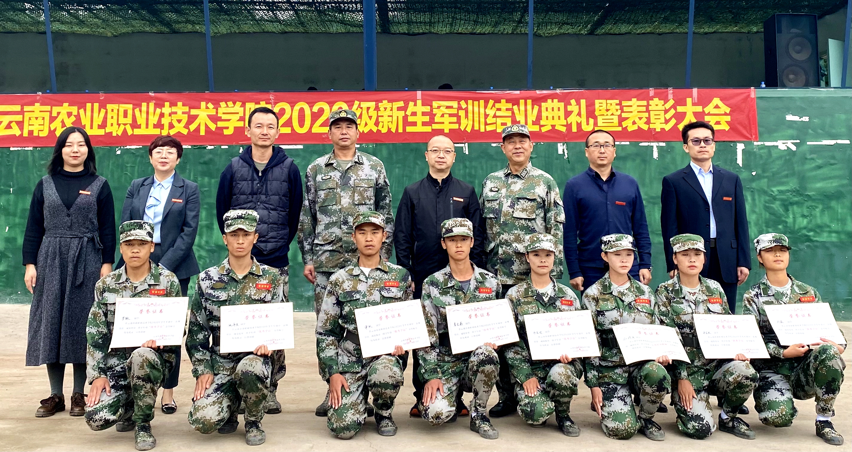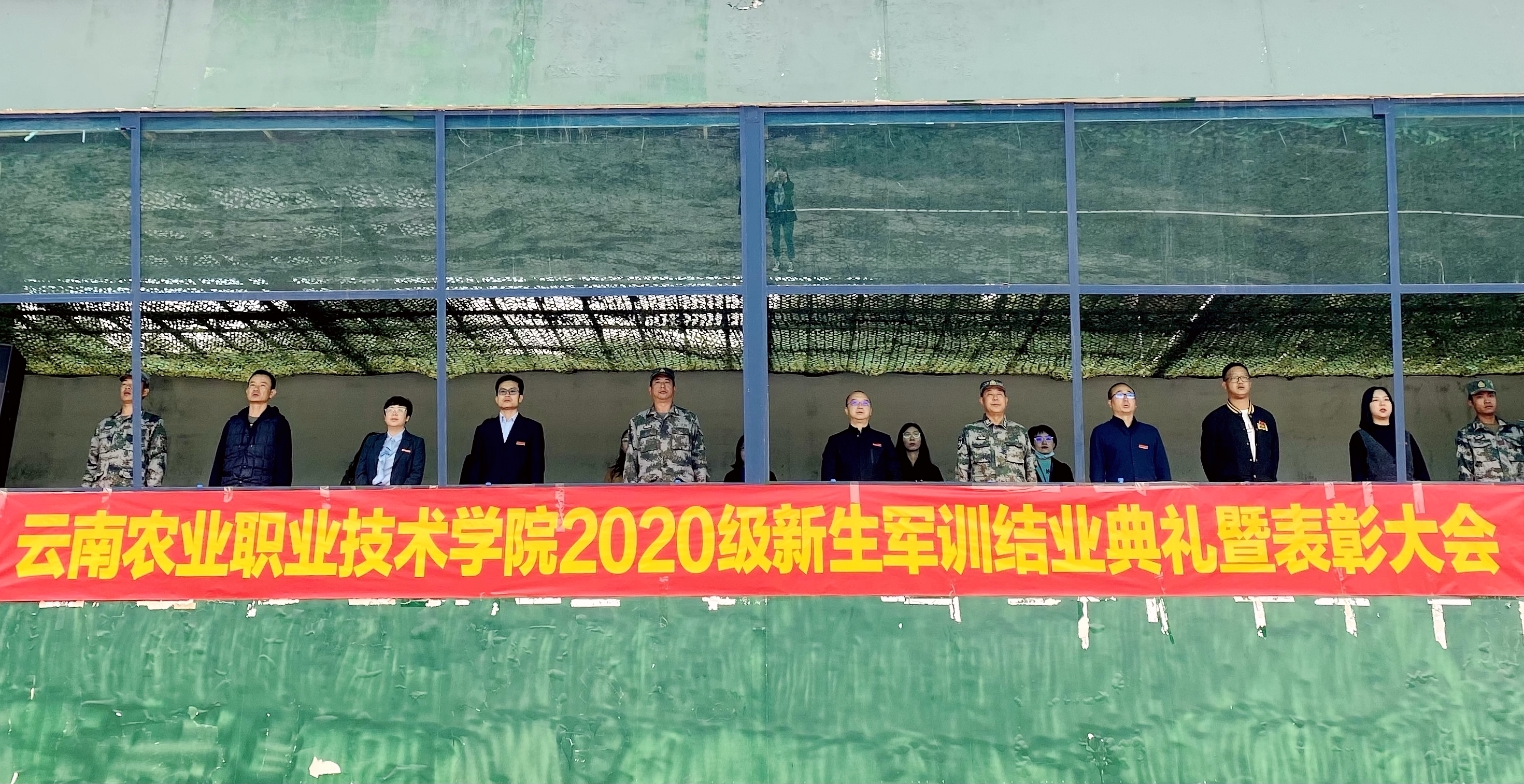 通知中心2020年10月16日,互联网技术学院2020级新生军训结业典礼暨表彰大会在龙溪沟国防训练基地隆重举行。学院副院长杨波,办公室(党委巡察办)主任夏体韬,互联网技术学院党总支书记郑绍洲,学生处武装部负责人曾品,昆明兵站学生军训基地负责人杨锡光上校及互联网技术学院各级负责人出席了本次活动。学生处负责人余水主持本次活动,全体新生班主任共同见证了此次军训成果。