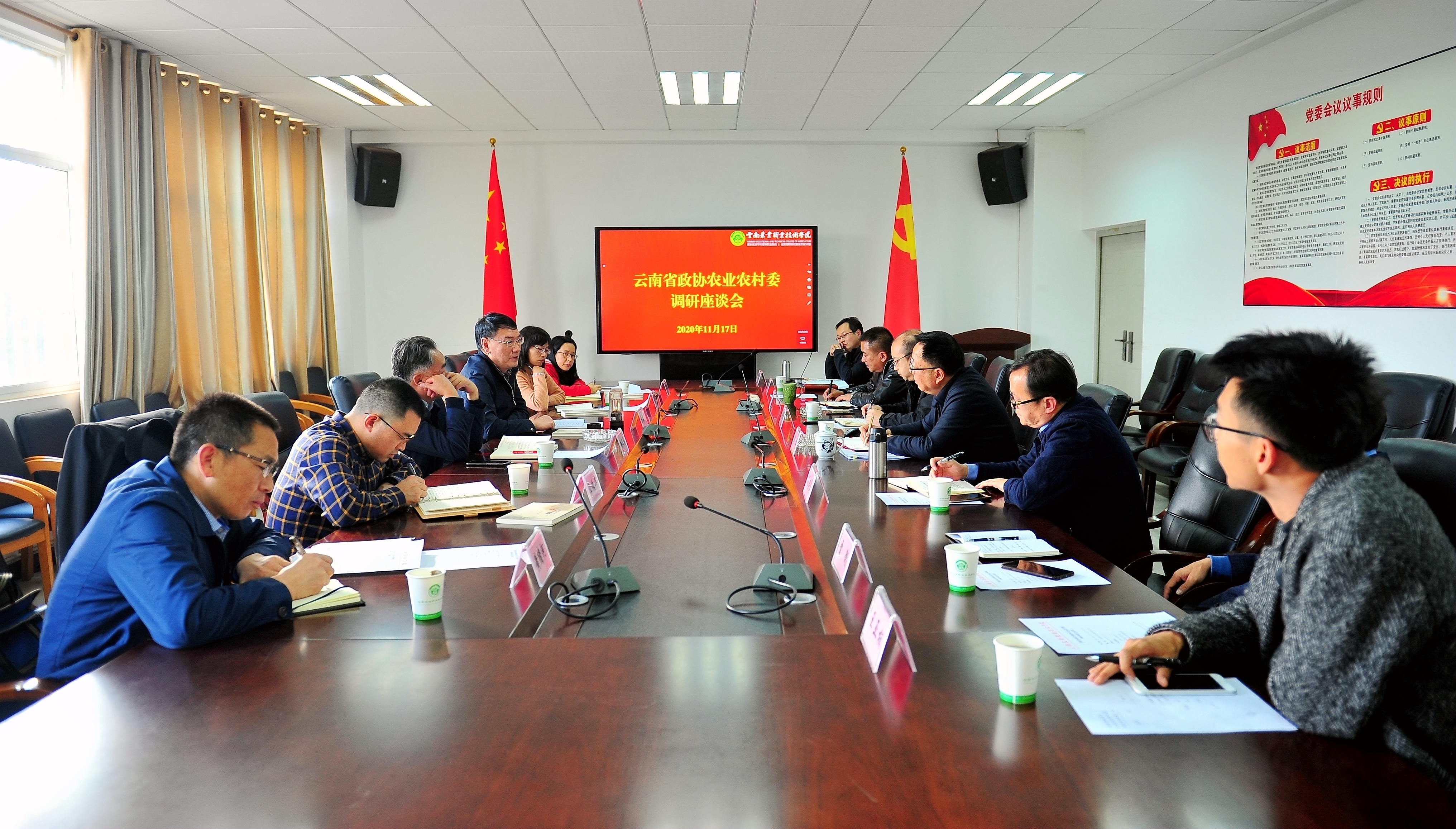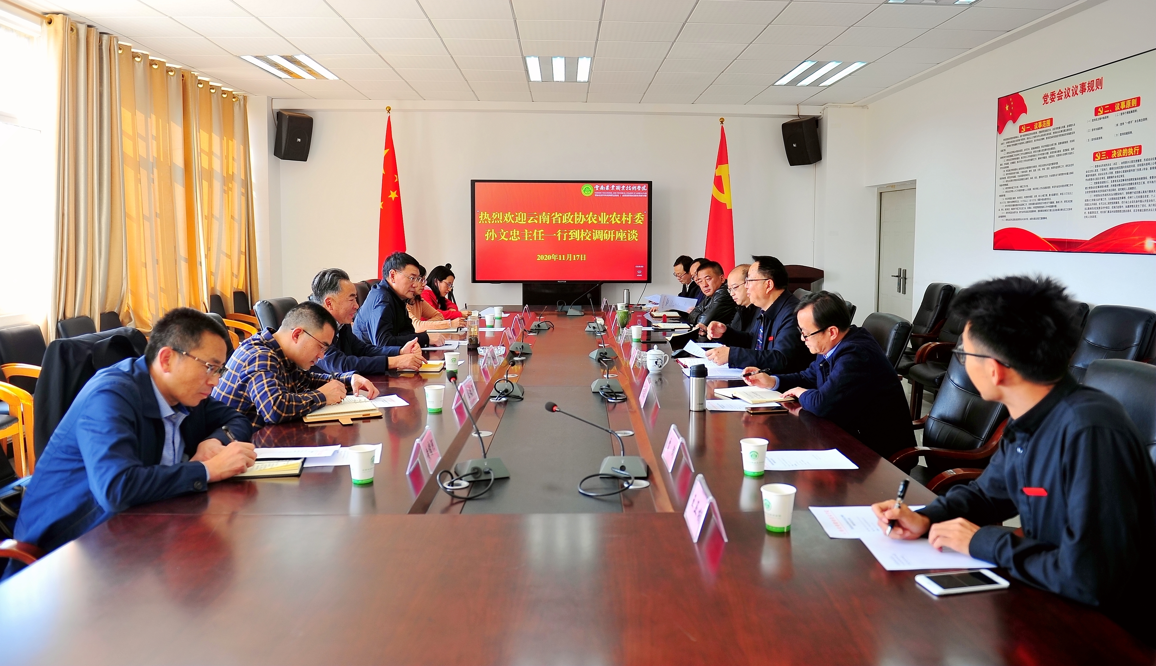 通知中心11月17日,云南省政协常委、省政协农业农村委主任孙文忠到best365调研座谈,学院党委副书记、院长文俊陪同调研。省政协常委、省政协农业农村委副主任郭五代(正厅级)、省政协农业农村委办公室副主任王德华(二级调研员)、省政协农业农村委办公室副主任罗之兰、省政协农业农村委二级调研员黄绪河、政协农业和农村委员会四级调研员张玲等同志参加调研工作。学院纪委书记冯志宏,副院长雷衡、苏华伟出席会议,座谈会由副院长杨波主持。教务处、高职所等相关部门负责人参会。