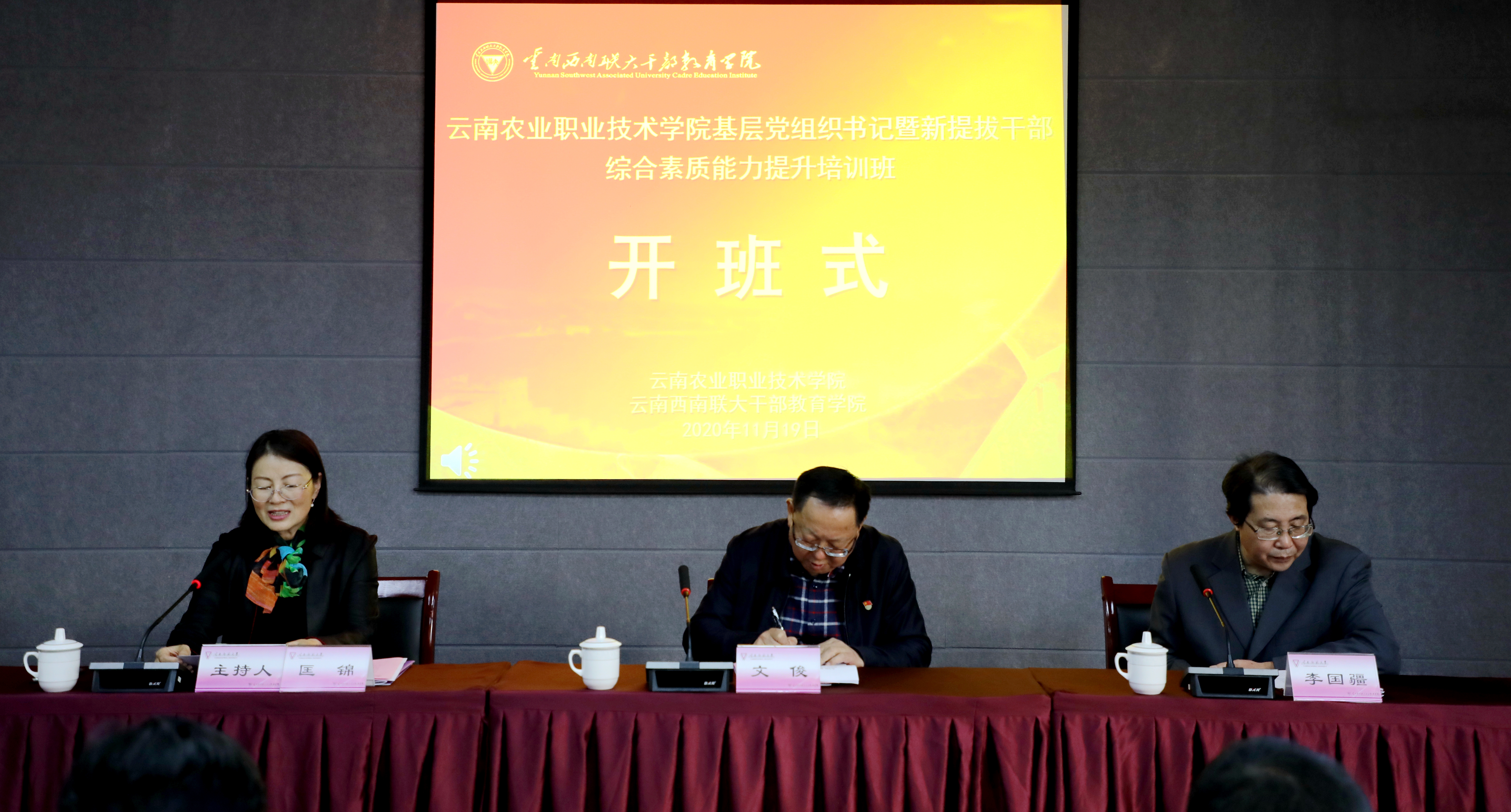 学院党委高度重视培训班工作,11月19日上午8:30举行了开班仪式,仪式在庄严的国歌声中拉开序幕,仪式由云南西南联大干部教育学院专职副院长匡锦同志主持,云南师范大学领导李国疆同志致欢迎词,院长文俊同志作动员讲话,并对学员提出了要切实增强培训学习的紧迫感和使命感的明确要求,我院基层党组织书记及新提拔干部共70余人参加了开班仪式。