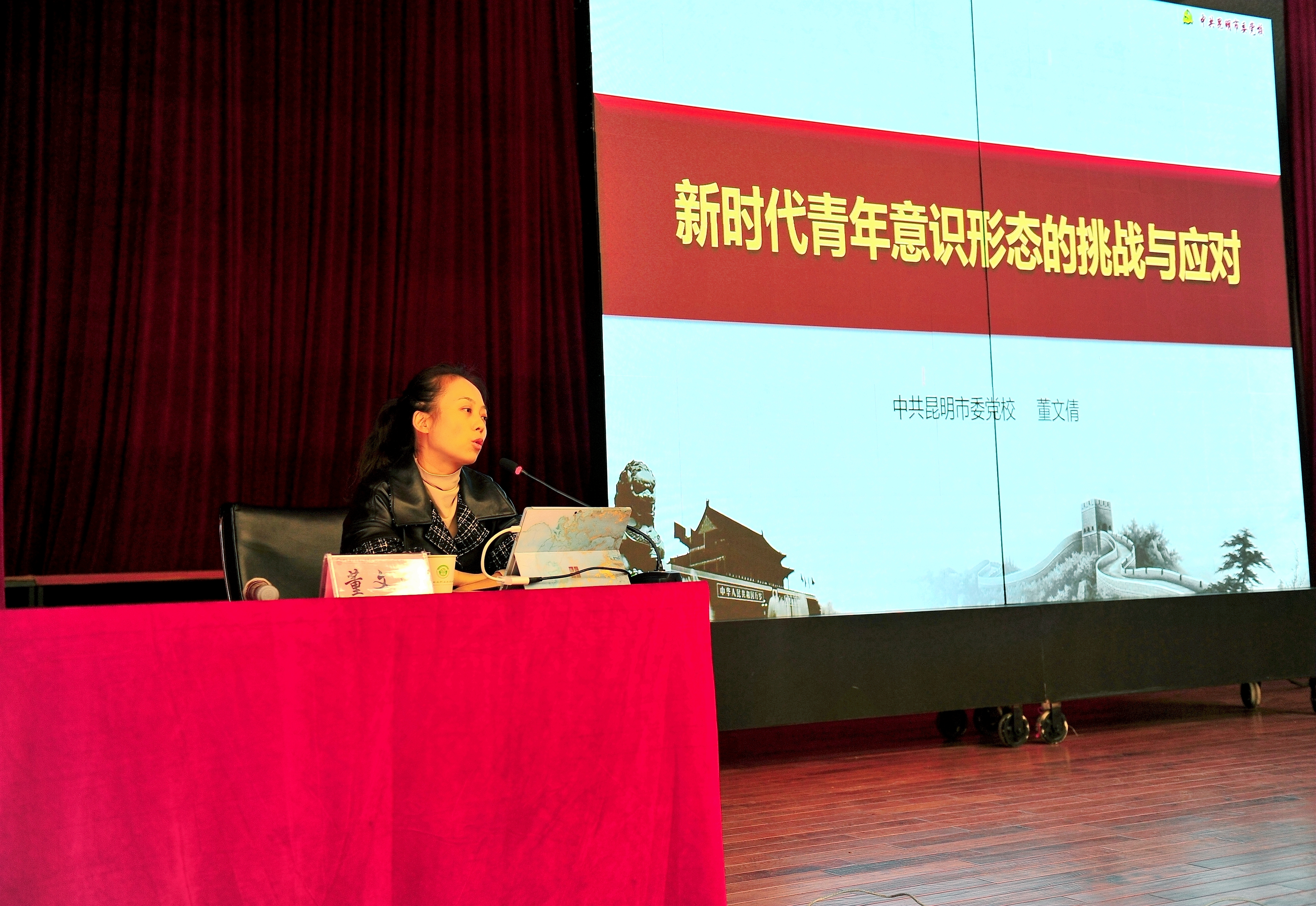 培训期间,举办了意识形态工作专题培训会,市委党校董文倩老师讲授了《新时代青年意识形态的挑战及应对》,董老师从意识形态工作是一项极端重要的工作、新时代青年意识形态面临的挑战、做好青年意识形态工作的基本要求三个方面为学员阐释了在新形势下,做好青年意识形态工作,必须坚持和加强党对意识形态工作的全面领导,从锻造信仰认同、增强理论认同、凝聚价值认同、提升话语认同、深化情感认同等四个方面建设有强大凝聚力和引领力的社会主义意识形态工作。