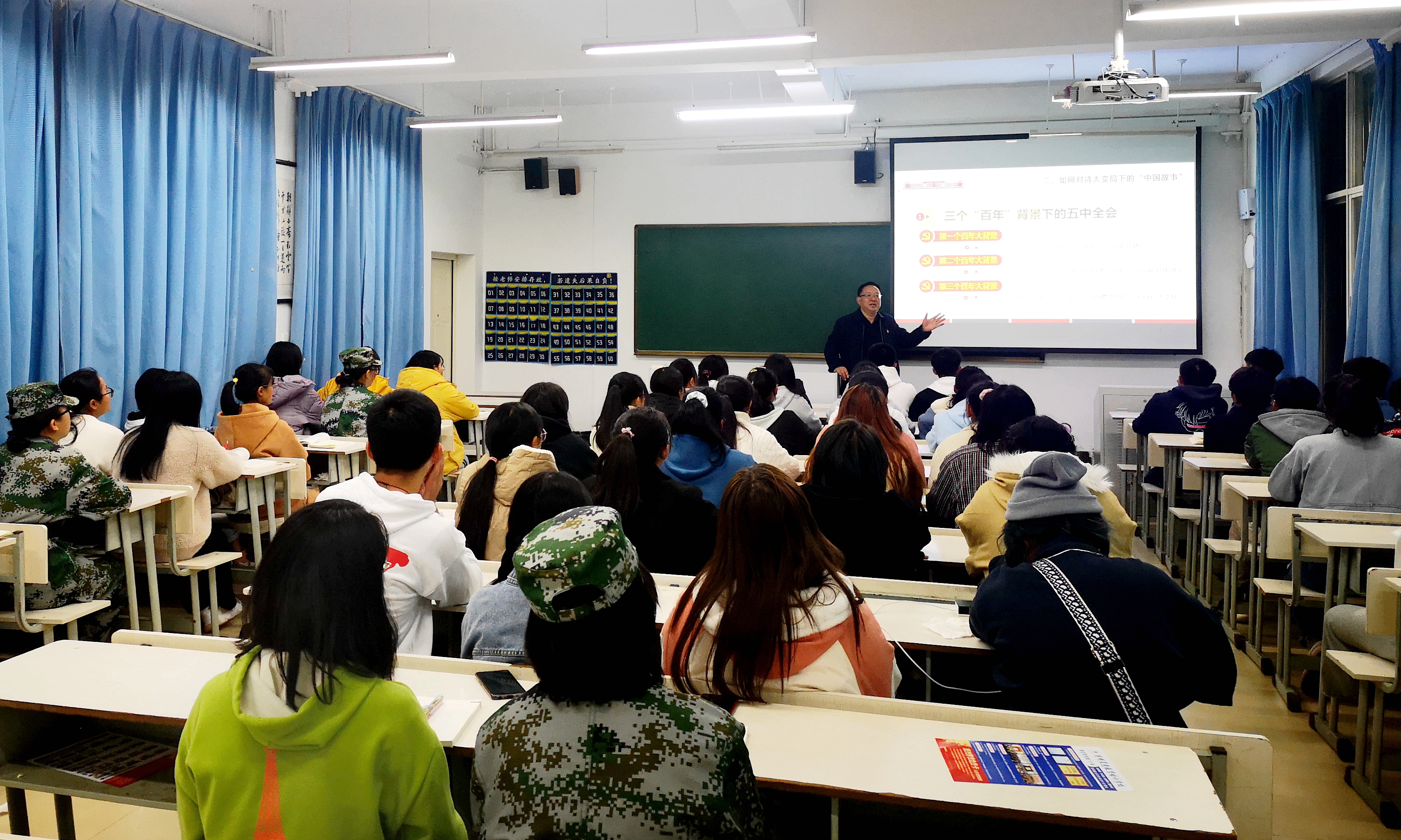 通知中心12月10日晚,学院党委副书记、院长文俊教授在绍年院205教室为2020级中药学三班的同学们宣讲党的十九届五中全会精神。