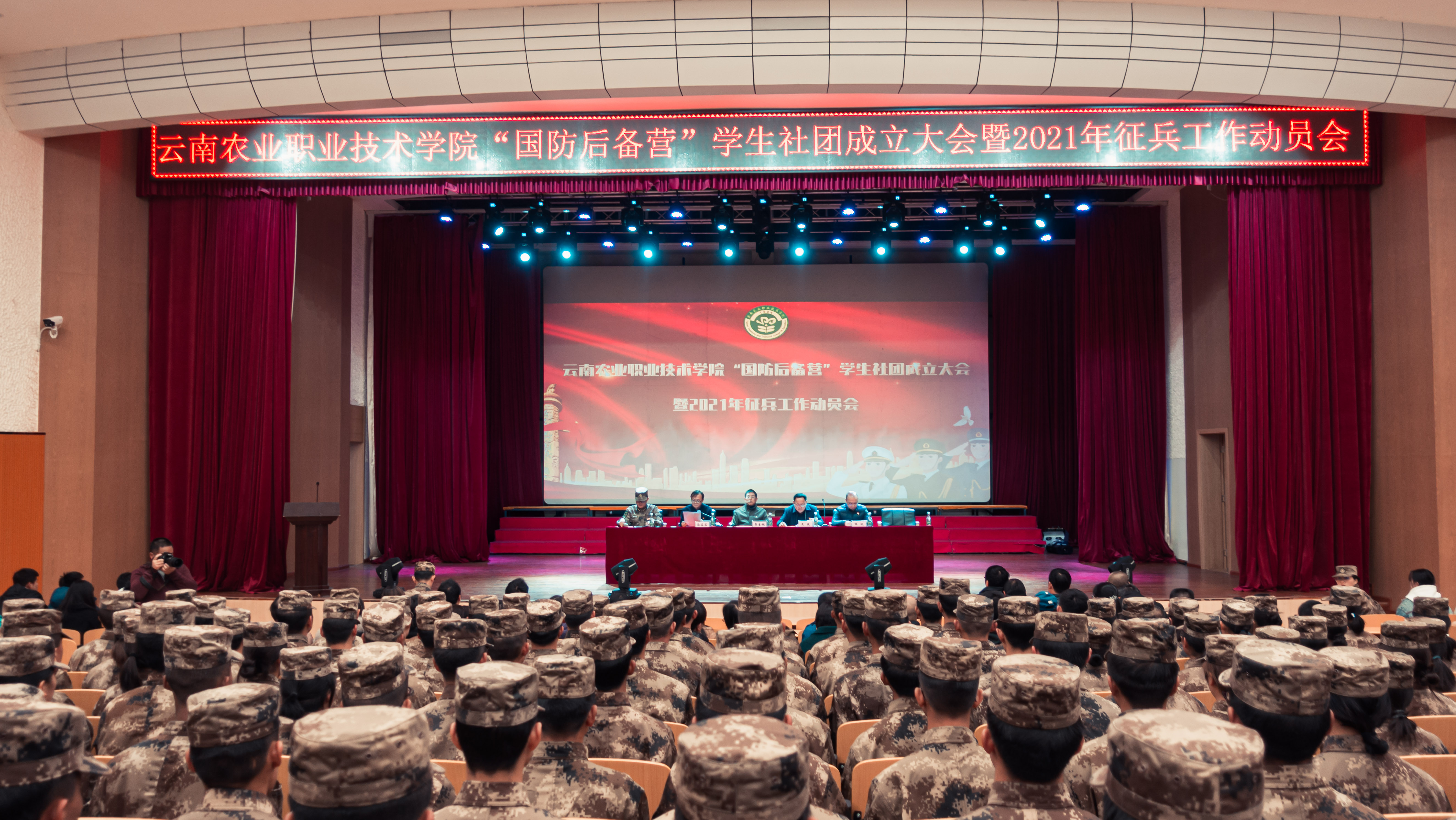 通知中心12月23日下午,我院在小哨校区蚕桑礼堂召开 “国防后备营”学生社团成立大会暨2021年征兵动员大会。学院党委书记崔金赋、院长文俊、纪委书记冯志宏、副院长杨波出席本次会议,组织部、宣传部、学生处(学生工作部、武装部)、教务处、保卫处、团委、后勤管理服务中心负责人;各二级学院党总支书记、院长、团总支书记;征兵工作辅导员、全体班主任、辅导员;退役复学大学生、学生会代表、学生社团代表;民兵连、国防后备营、茭菱校区民兵连代表参加,会议由学生工作部负责人余水主持。