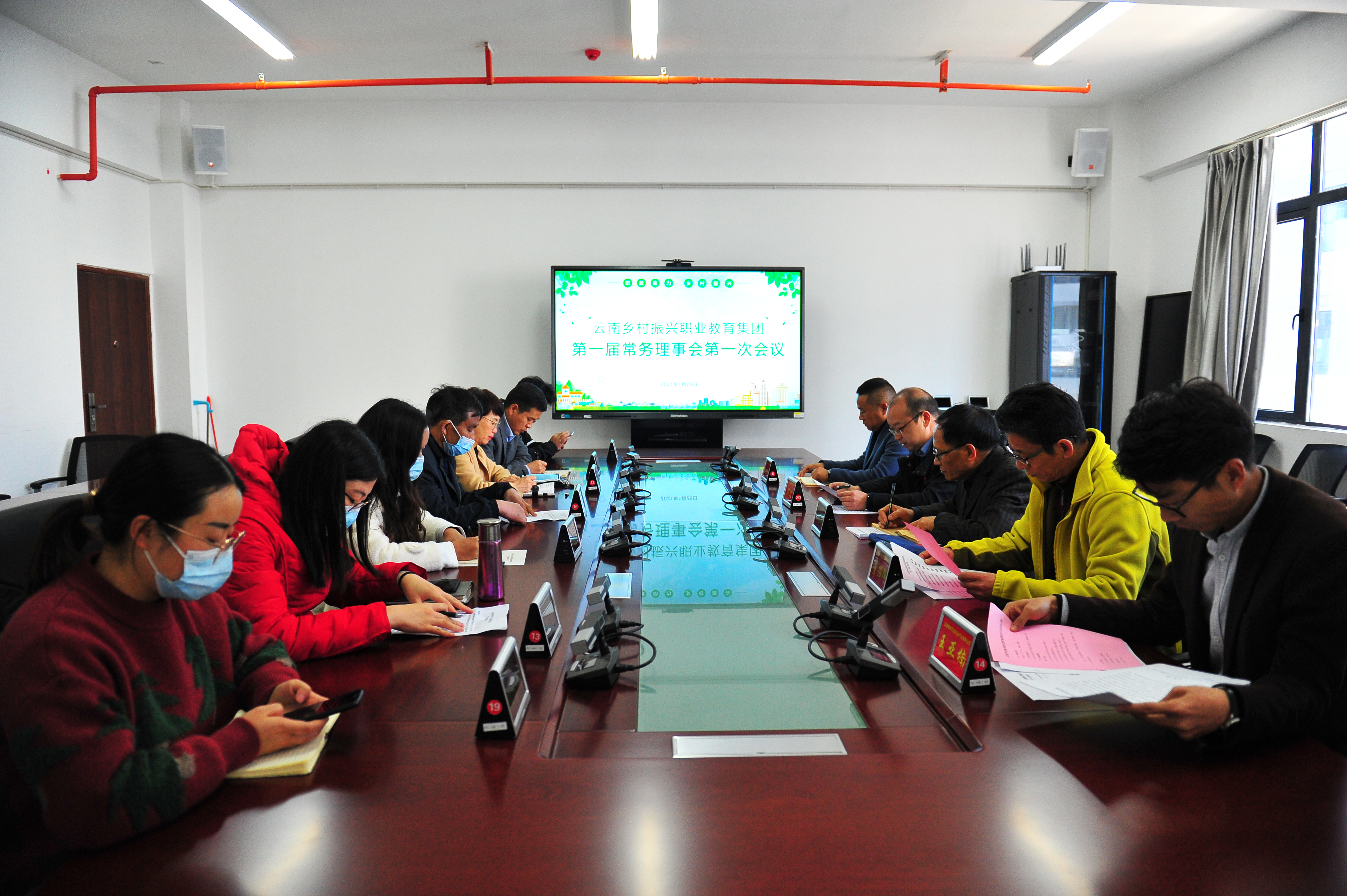 新当选的常务理事在学院茭菱校区826会议室召开云南乡村振兴职业教育集团第一届常务理事会第一次会议。会议选举产生了云南乡村振兴职教集团第一届理事长和副理事长,研究确定了秘书长单位,并任命秘书长、副秘书长,研究职教集团2021年重点工作。