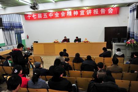 下午,大会认真听取了省委宣讲团成员、省社科院原哲学所所长向翔研究员关于《十七届五中全会精神》的专题讲座,讲座全面而系统的介绍了我国十二五发展规划的深刻内涵,我省十二五规划的基本特点;介绍了杨善洲同志的先进事迹和可贵精神。崔金赋书记对向翔研究员的讲座予以高度评价,并号召全体教职员工积极向杨善洲同志学习,强化师德教育和敬业精神,切实做好学院的思想政治工作!
