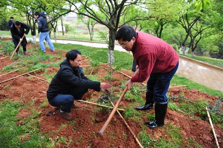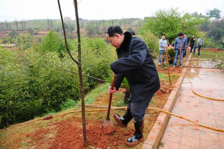 讲座结束后,全体参会人员在校内专家楼周边空地开展了学习了杨善洲同志义务植树活动。党委书记崔金赋、院长彭志远等六位院领导率领全体参会人员冒雨栽下160余棵树木,为校园的美化、绿化增添了亮丽,党员和教师以实际行动表达了学习杨善洲,争当先进模范的决心。云南电视台记者对我院的义务植树活动进行了跟踪报道。