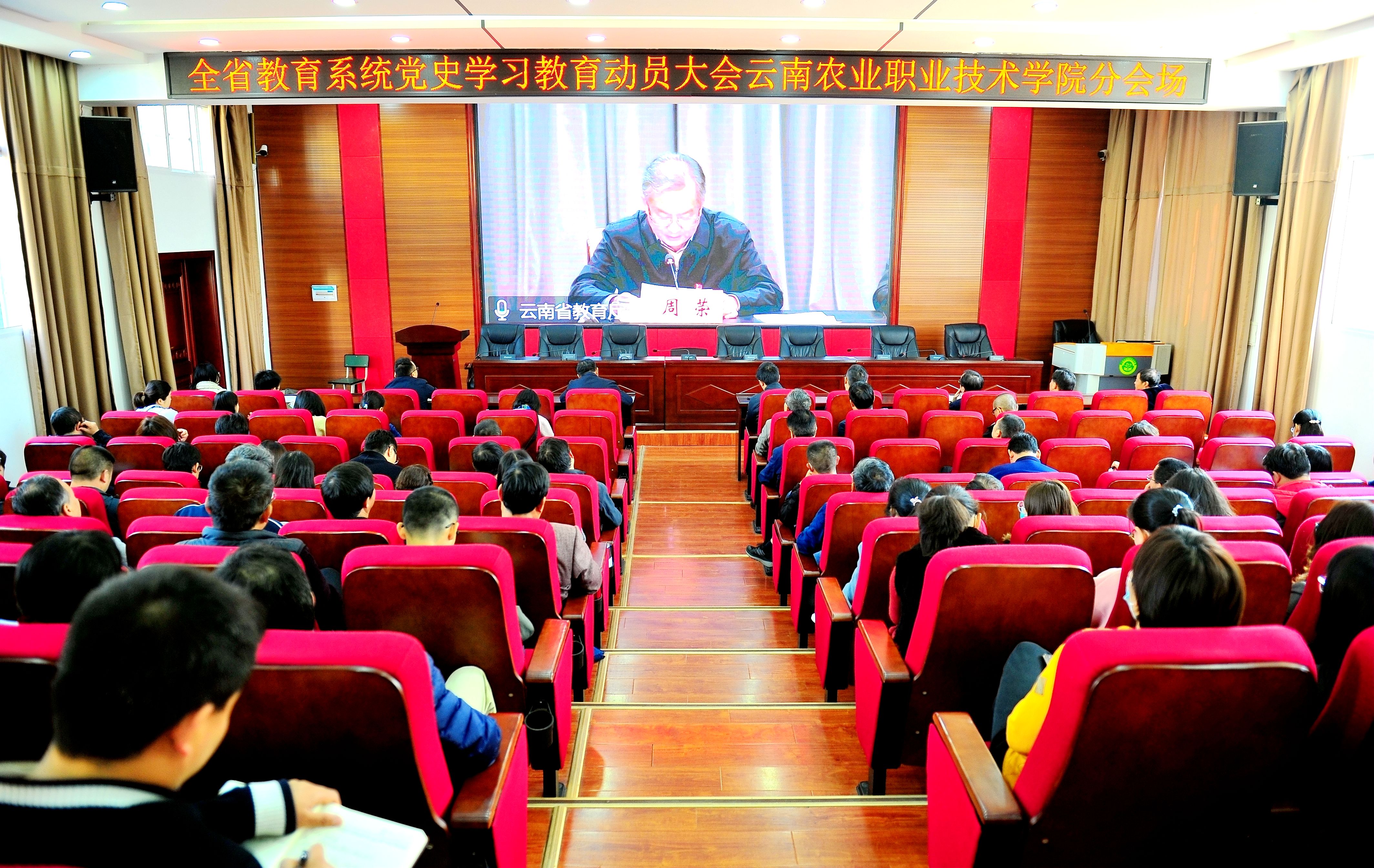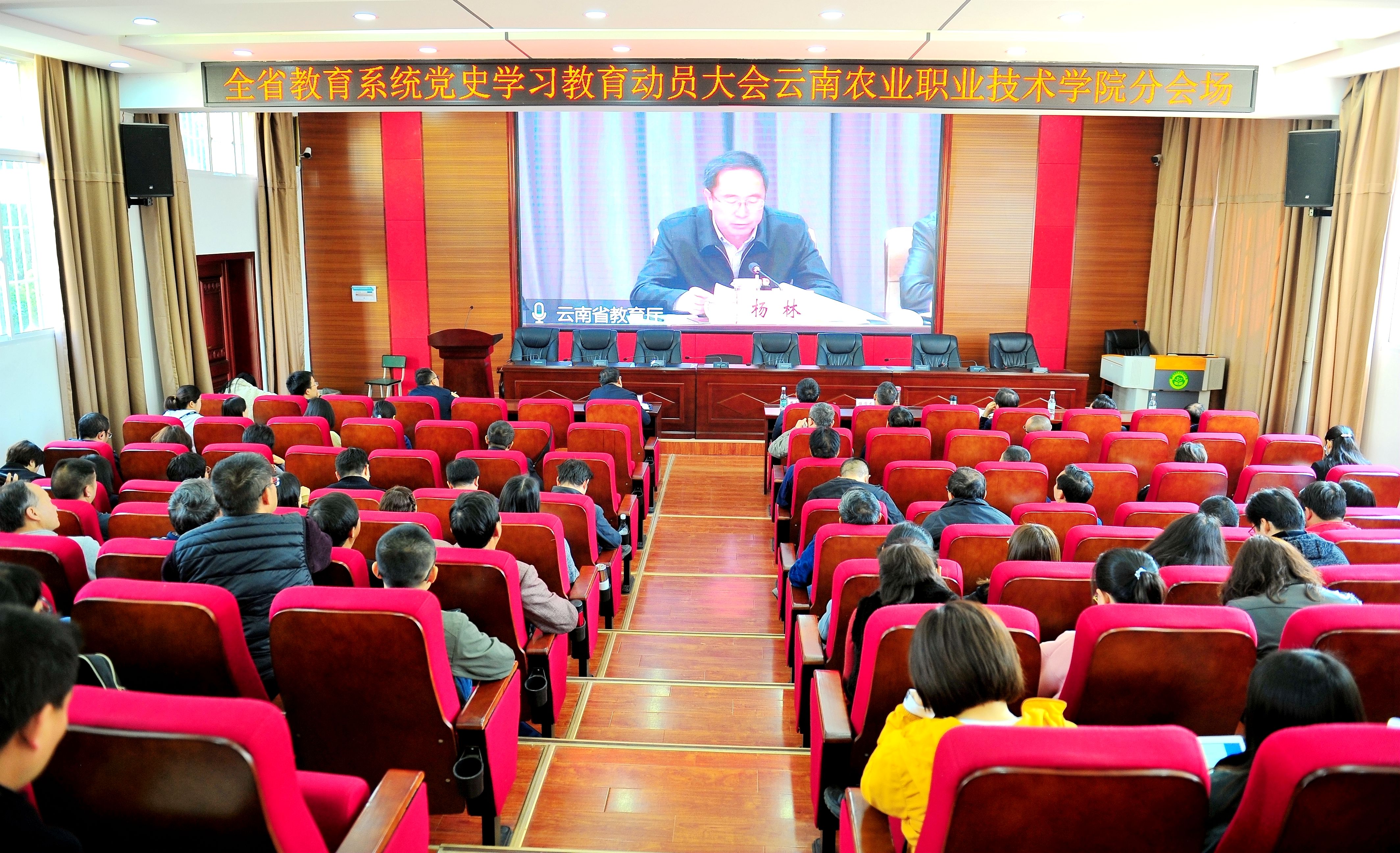 3月12日上午,全省教育系统党史学习教育动员大会以视频会形式在昆明召开,会议由省委教育工委常务副书记杨林主持。我院在小哨校区嘉锐楼报告厅设置分会场,学院党政领导班子成员、全体中层干部、各党支部书记参加了会议。