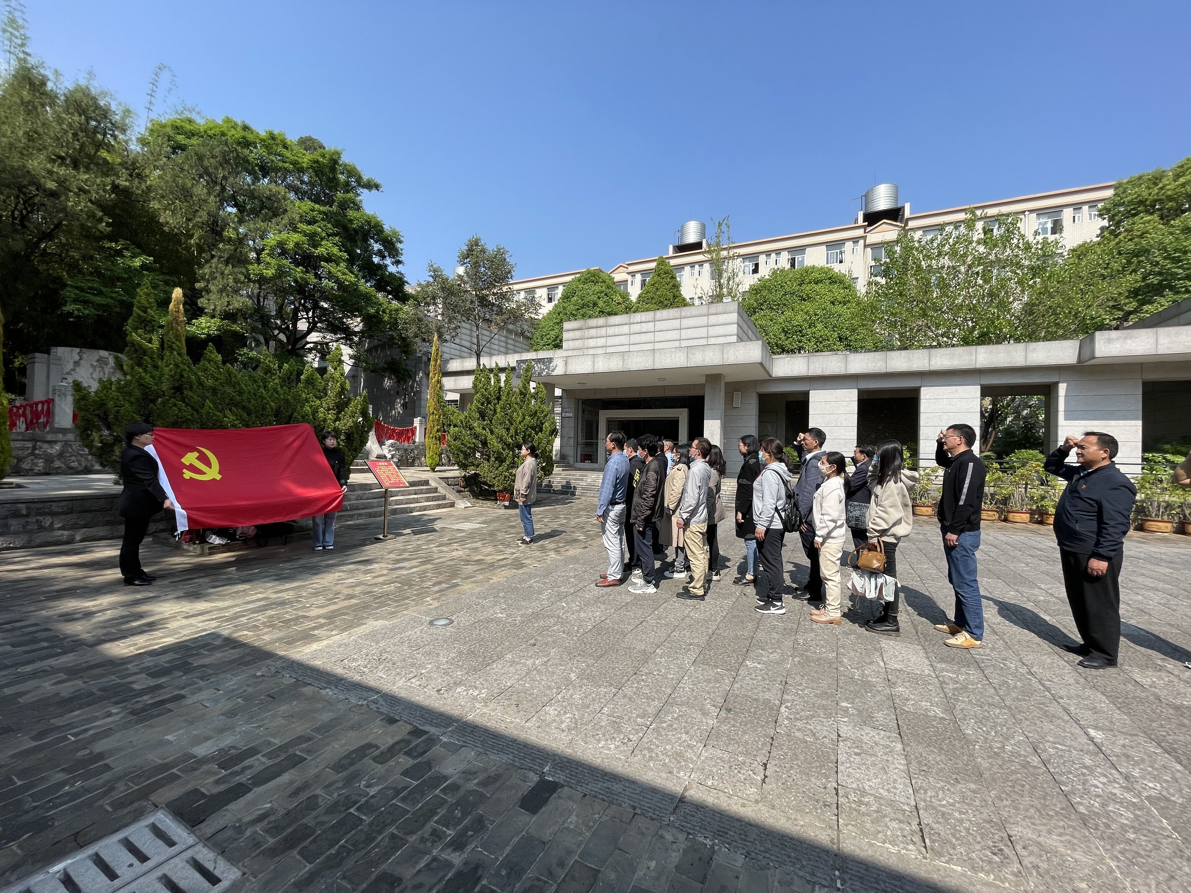 在讲解员的带领下,同志们先后参观了国立西南联合大学纪念馆、“一二一”运动四烈士墓、一二一”运动纪念柱、国立西南联合大学纪念碑、等历史遗存,实地感受联大历史。活动中全体党员干部带着对烈士们无限的缅怀与哀思,在纪念碑前庄严肃立,献花、默哀,缅怀革命烈士的丰功伟绩,表达对革命先烈的崇敬之情。同时,在纪念碑下,全体党员怀着无比崇敬之情,重温了入党誓词。在党总支副书记保志鹏同志的带领下,全体党员高举右手,面对鲜红的党旗,再次庄严宣誓:“我志愿加入中国共产党……随时准备为党和人民牺牲一切,永不叛党。”铿锵恢宏的誓词,强烈震撼着在场的每一位党员,一字一句,神圣而豪迈,铮铮誓言,表达了对党的忠诚和全心全意为人民服务的决心。