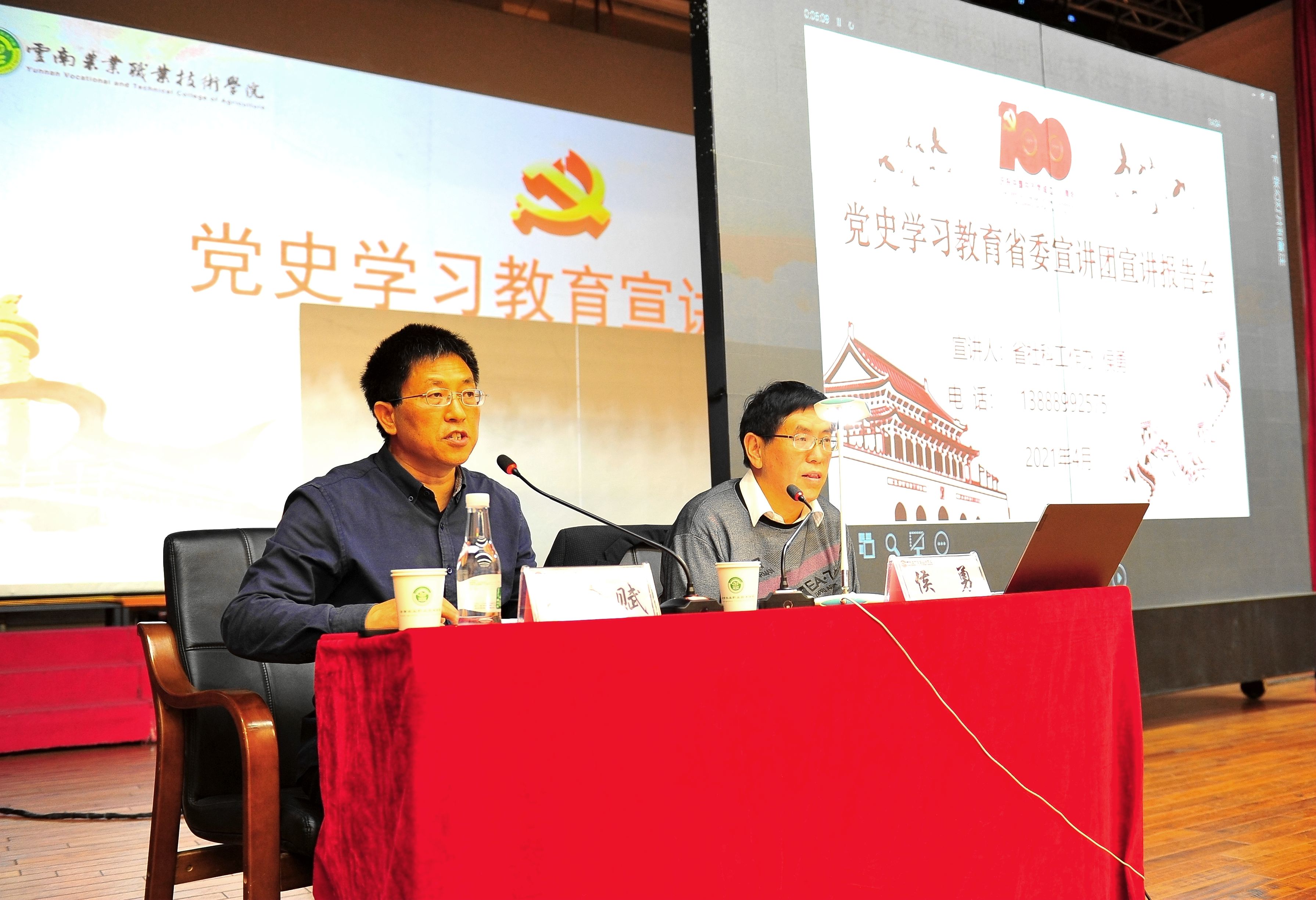 通知中心4月20日下午,按照省委教育工委的统一安排部署,学院在蚕桑礼堂召开党史学习教育宣讲报告会,邀请现任省哲学社会科学工作办公室主任,省委宣讲团成员侯勇老师来校宣讲。全体党员、非党员中层及以上干部、离退休党员代表、学生代表约400余人聆听了报告会。报告会由学院党委书记崔金赋同志主持。