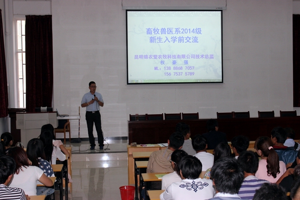 8月22日晚上7点,畜牧兽医教研室在行政楼阶梯教室开展讲座。邀请了本专业的外聘专家昆明锦农堂农牧科技有限公司的技术总监权豪强老师,为同学们答疑解惑,为今后的学习、生活指明方向。参加会议的畜牧兽医教研室主任彭洁老师、畜牧兽医教研室支部书记陈红艳老师,还有霍海龙老师、赵筱老师、宋伟老师等各班班主任。