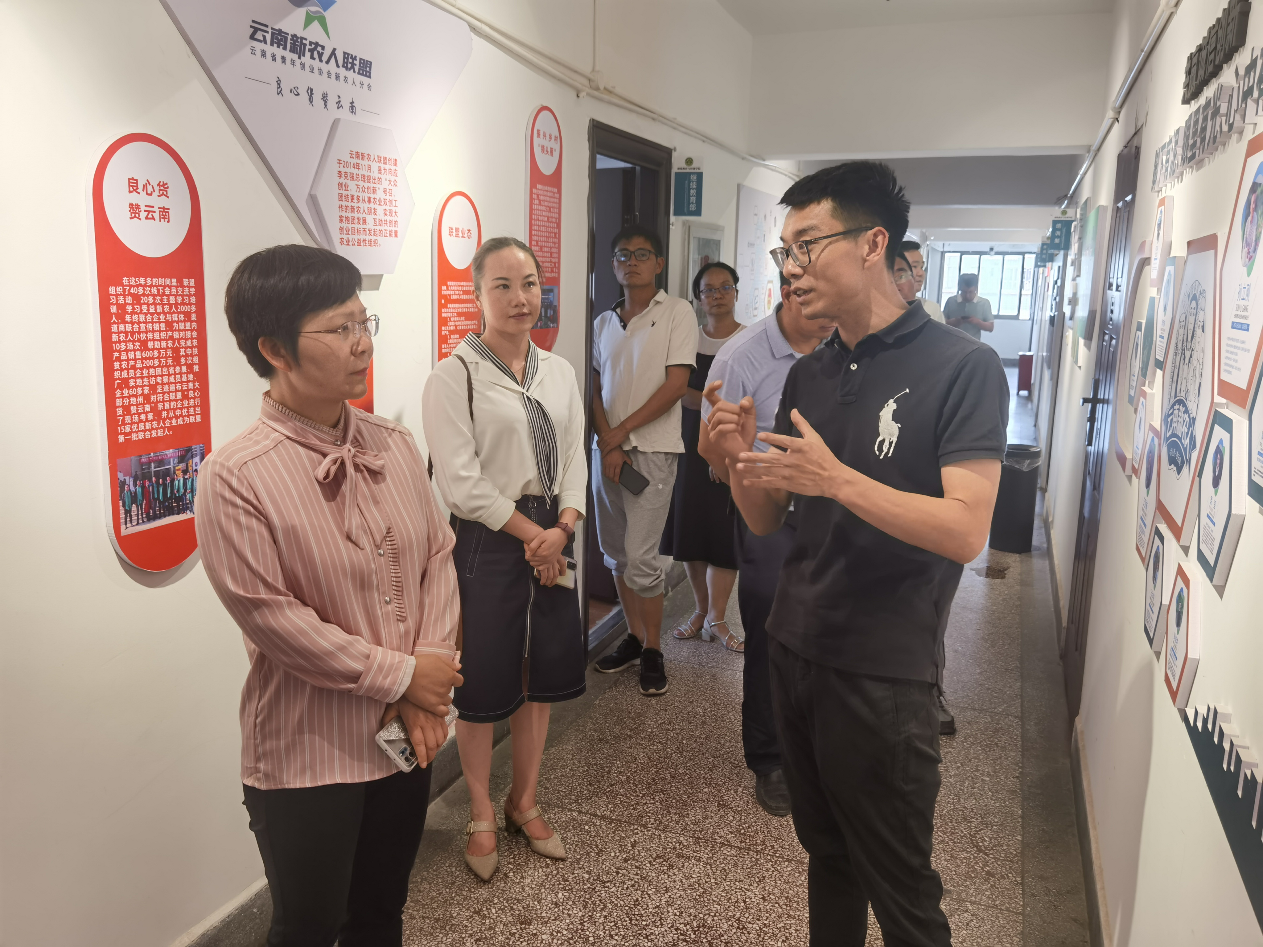 我院产教联盟负责人、云南省新农人创新创业学院执行院长王亚楠向调研组一行表示热烈的欢迎,紧接着调研组一行在王亚楠带领和讲解下,先后参观了我院高原特色农业产业品牌孵化中心、产教联盟绿色食品展销中心以及我院众创空间、校史文化走廊等。实地了解听取关于云南省新农人创新创业学院在我院的领导下开展五华城市新农人联盟建设工作的情况。