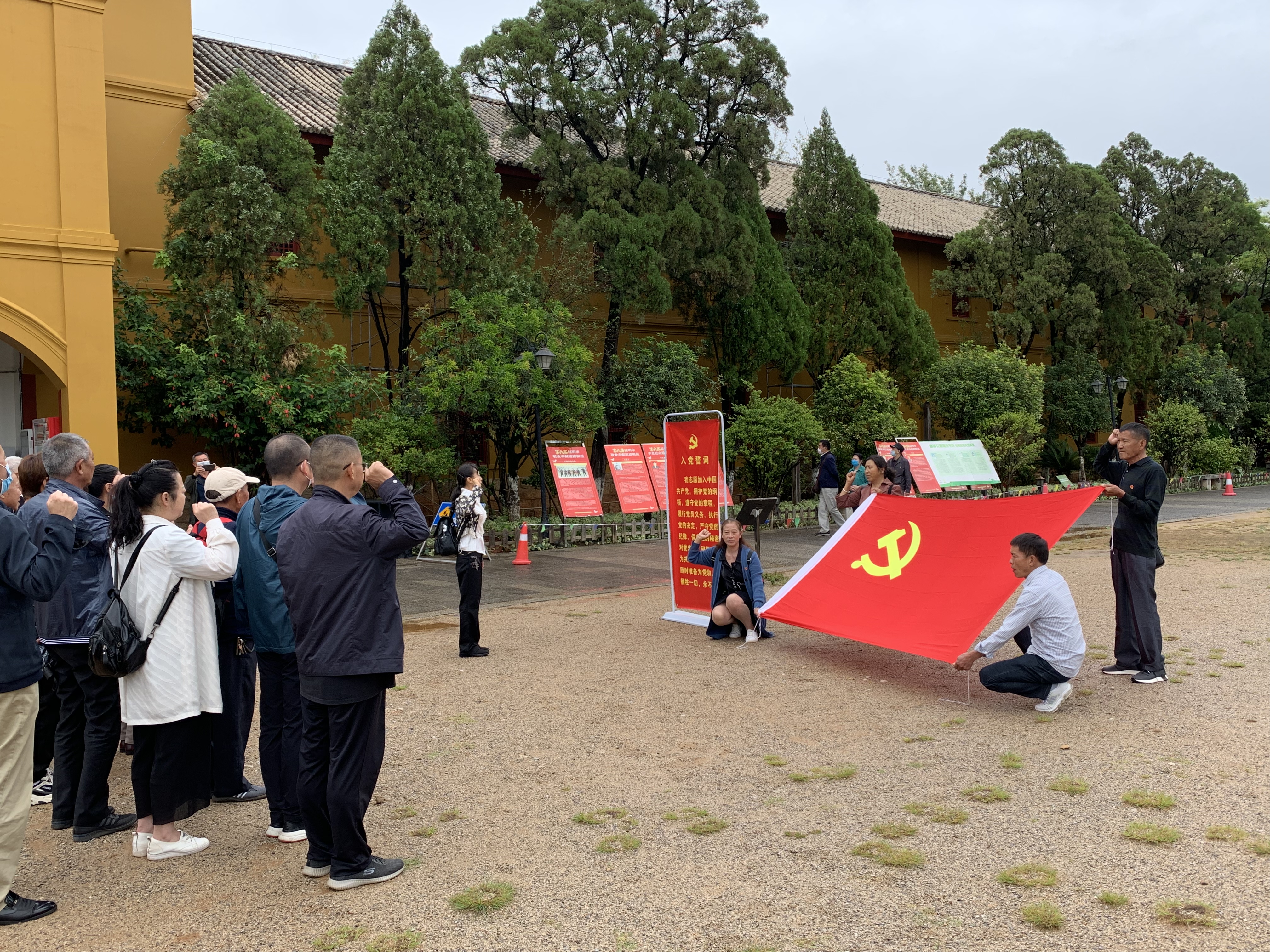 在云南陆军讲武堂的训练场上,离退休党总支书记凌军同志对到场的党员同志们再次强调了坚定革命信念、传承红色基因、进行党史学习教育的必要性和重要性;在离退休总支第三党支部书记肖奕同志的带领下,党员同志们重温入党誓词。