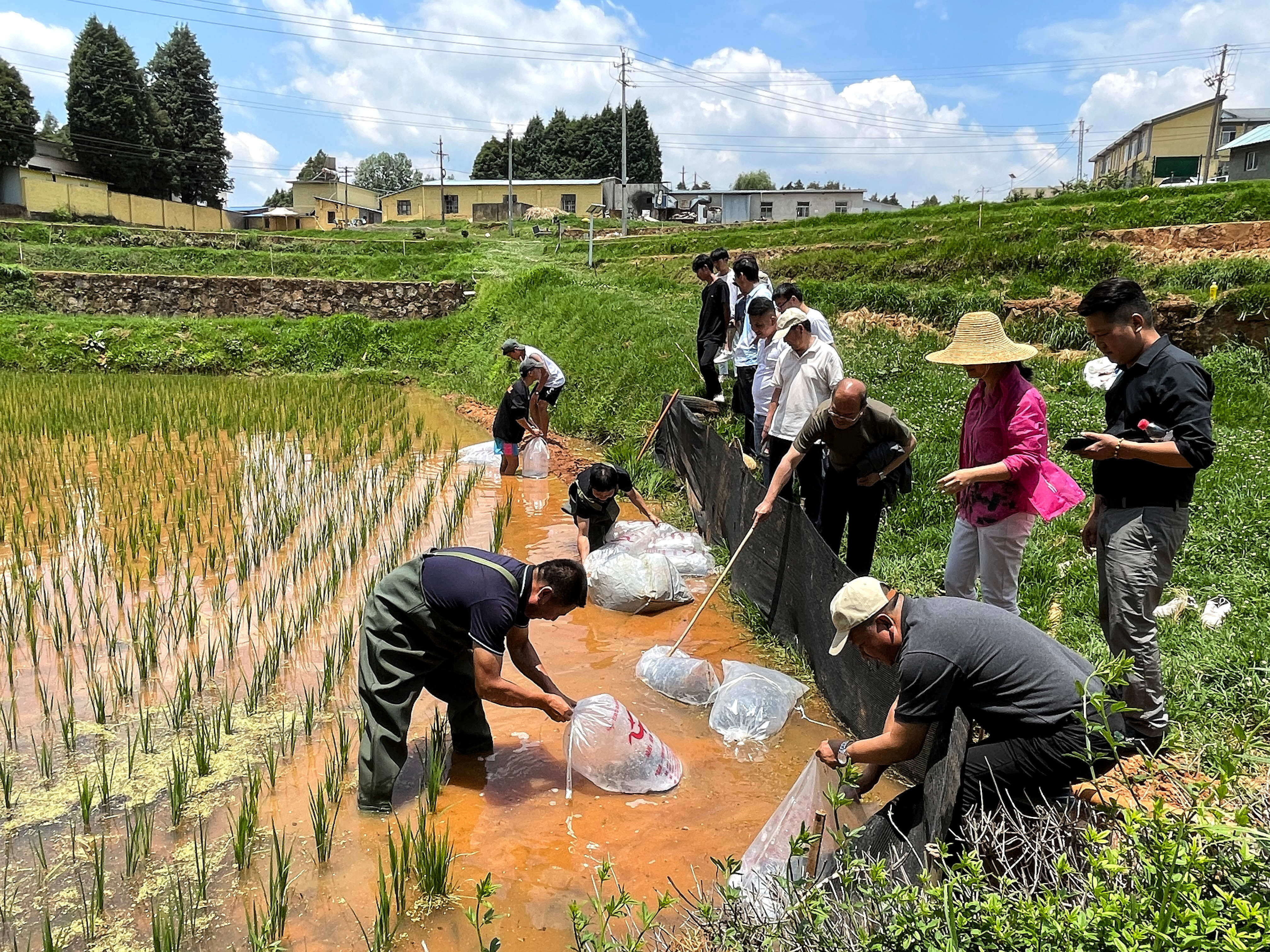 通知中心学院水稻实验田波光粼粼,嫩绿的禾苗随风摇曳。5月31日中午12点30分,畜牧兽医学院党总支、机关科技对外质控办实践中心图书馆党支部和水产养殖专业部分学生联合开展“稻田放鱼”主题党日活动,在学院水稻实验田投放共计70公斤,大约2100尾鱼苗。