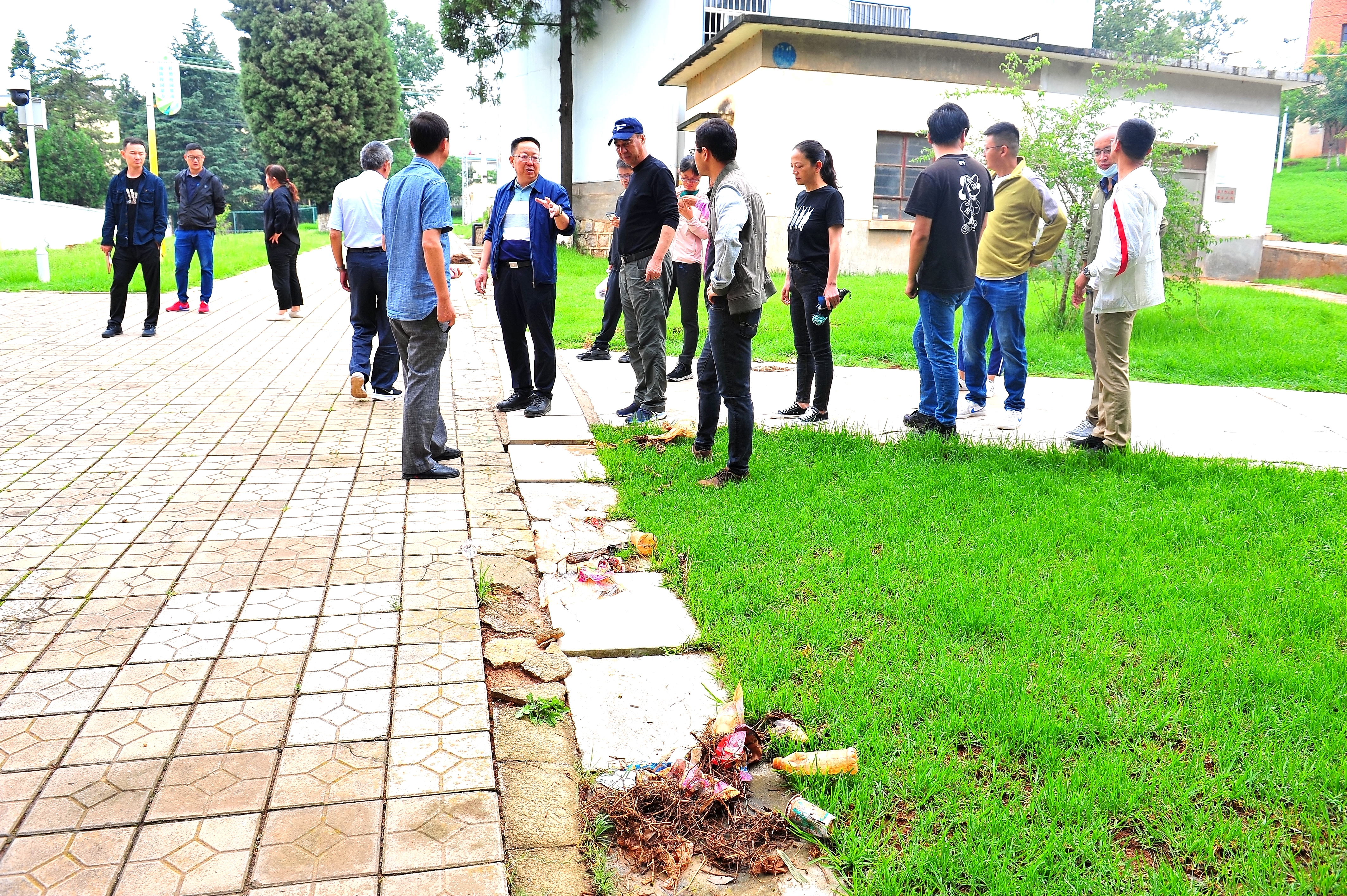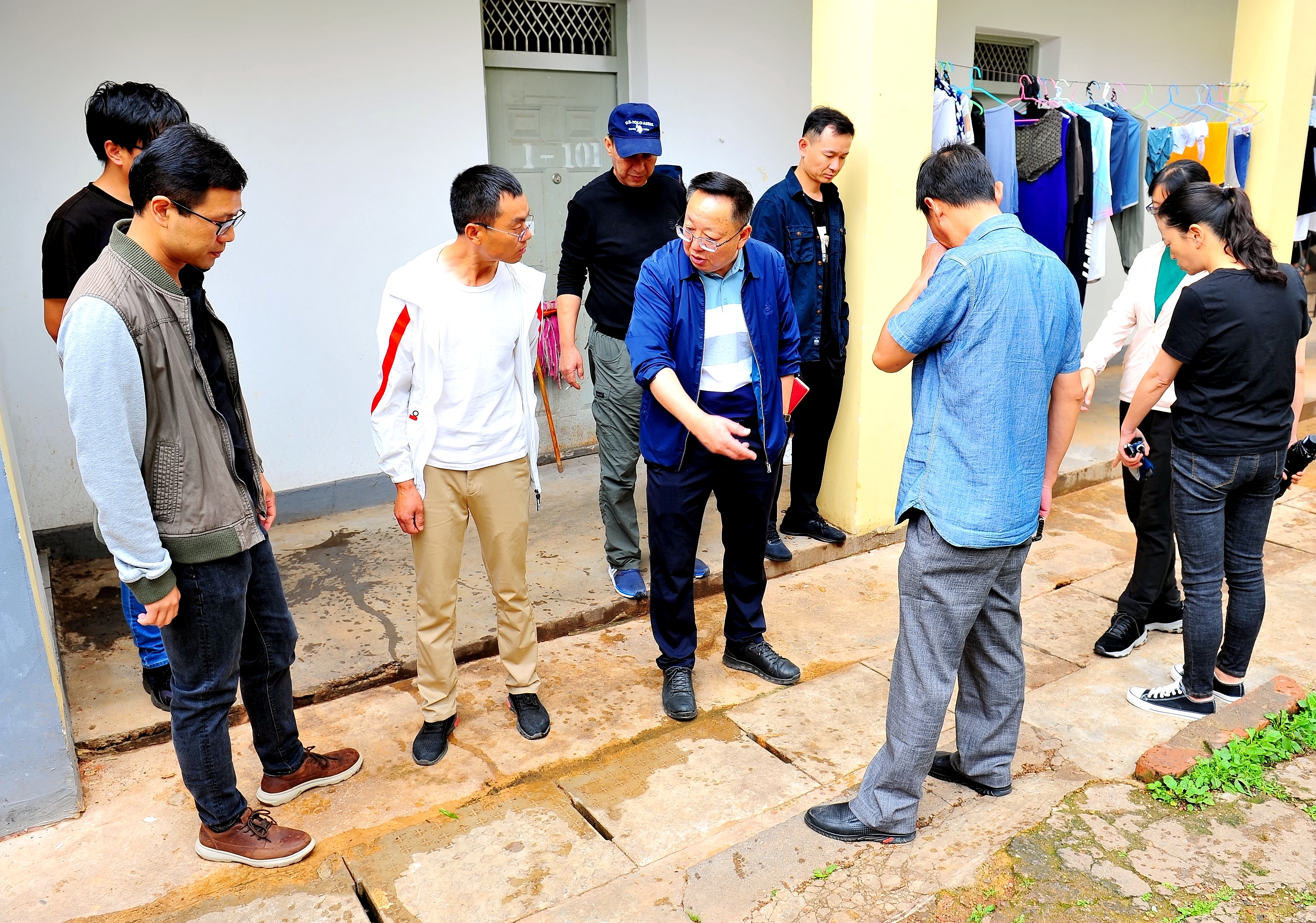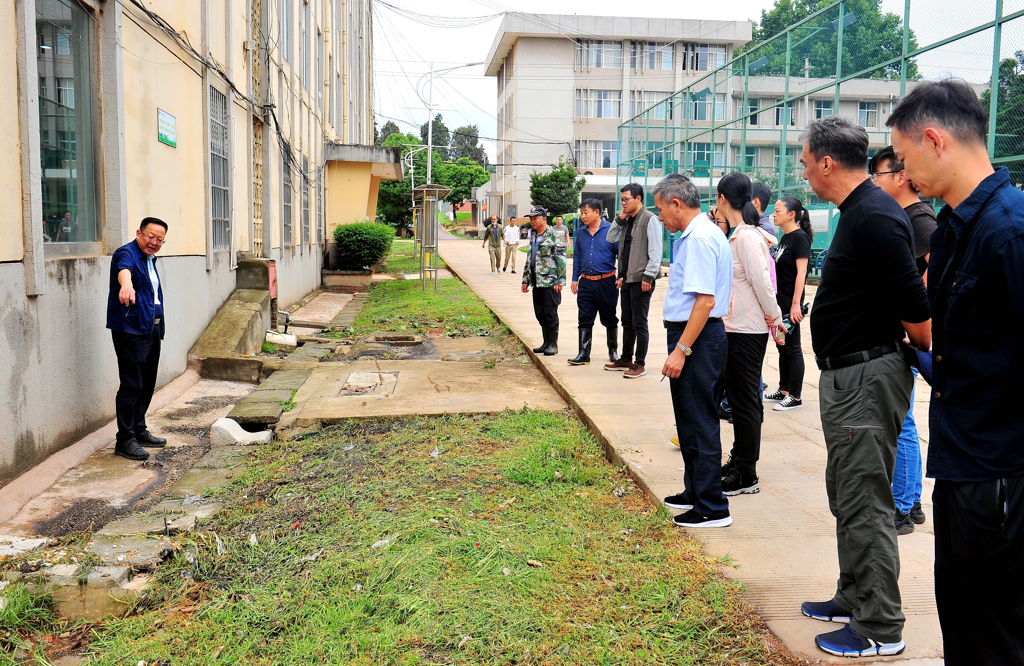 6月22日9:30在学生服务中心门口,院长文俊紧急召开学院防洪防汛检查暨防范自然灾害现场会,办公室、宣传部、学生处、保卫处、后勤管理服务中心、实践教学中心负责人以及水电、设备检修和安保管理人员参会。文俊院长听取保卫处、学生处、后勤管理服务中心防汛排危工作情况汇报,并带领全体参会人员深入耕道院、鸿鹄楼、花庄河、水产实训基地及实训基地查看受灾情况,关心学生人身安全和财产损失以及设施安全、设备运转情况,并在现场指导和传授水利防汛经验,提出解决问题的具体方法和应急措施。