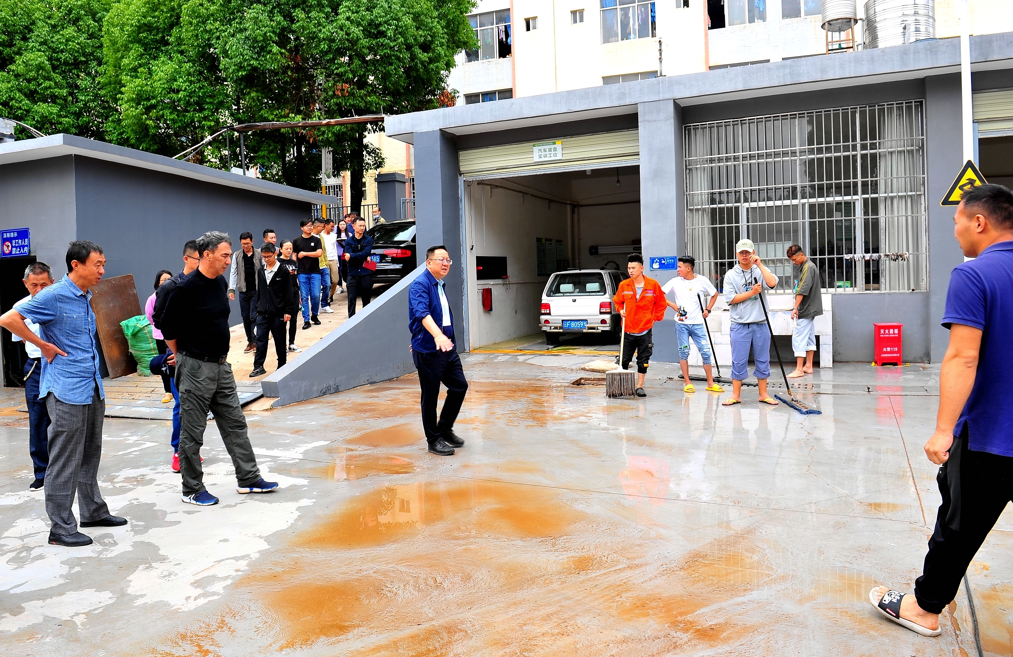 通知中心6月21日21:30至0:10小哨校区突降30年难遇的暴风雨,导致耕道院、鸿鹄楼一楼学生宿舍出现积水情况,部分树木吹倒、实训田埂塌方,沼气实训基地也出现大量积水,花庄河及水产实训基地水位快速上涨。学院总值班雷衡副院长立即安排保卫处、学生处、后勤管理服务中心、实践教学中心等值班人员深入校园查看险情,及时安排保卫处、学生处、后勤管理服务中心主要负责人迅速调集宿管员、水电维修工人及15名保安等人员,雷衡副院长带领全体人员冒瓢泼大雨第一时间投入到防汛排危工作中,直至凌晨2:30分学生宿舍积水得以全部排除。