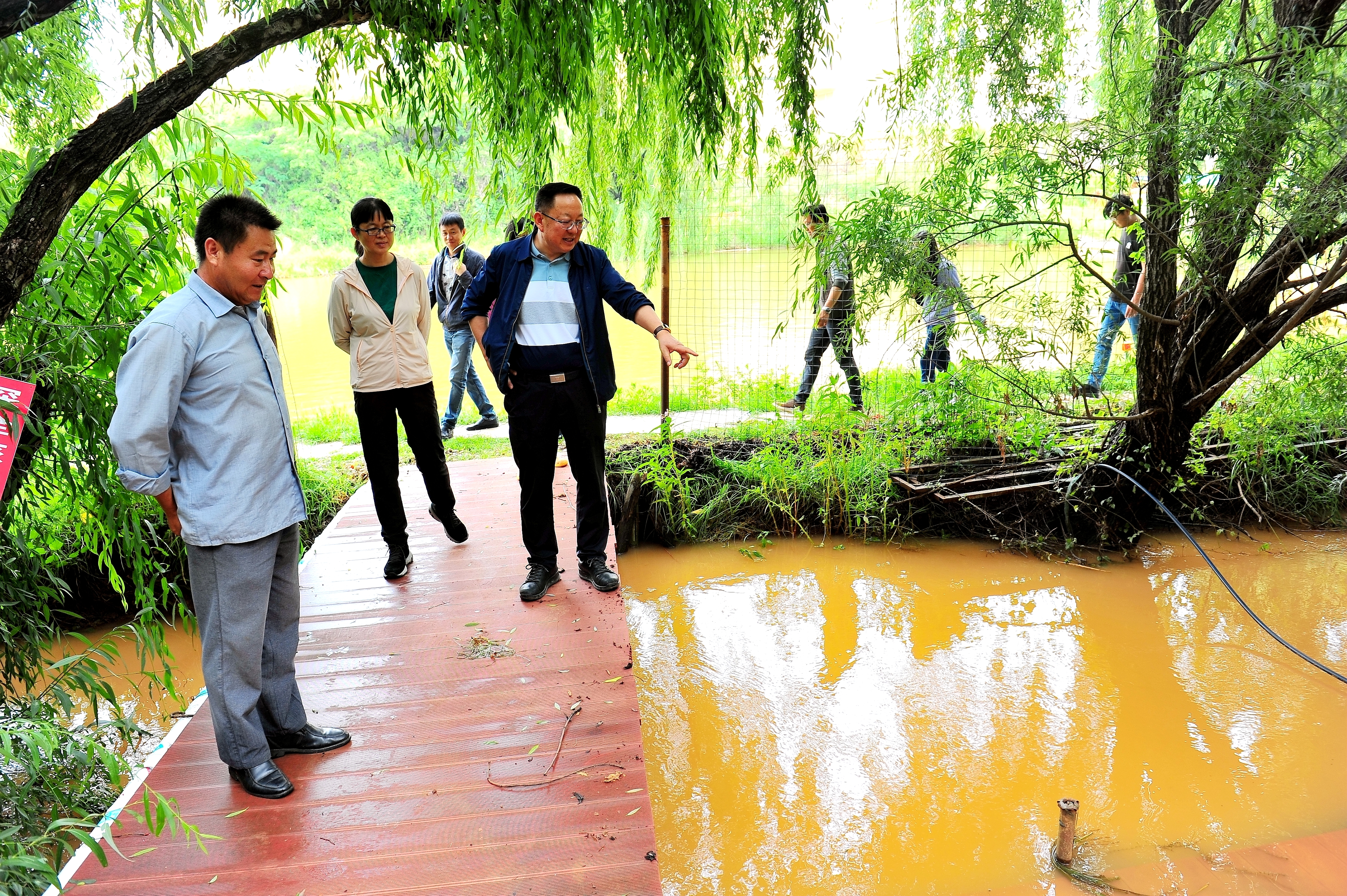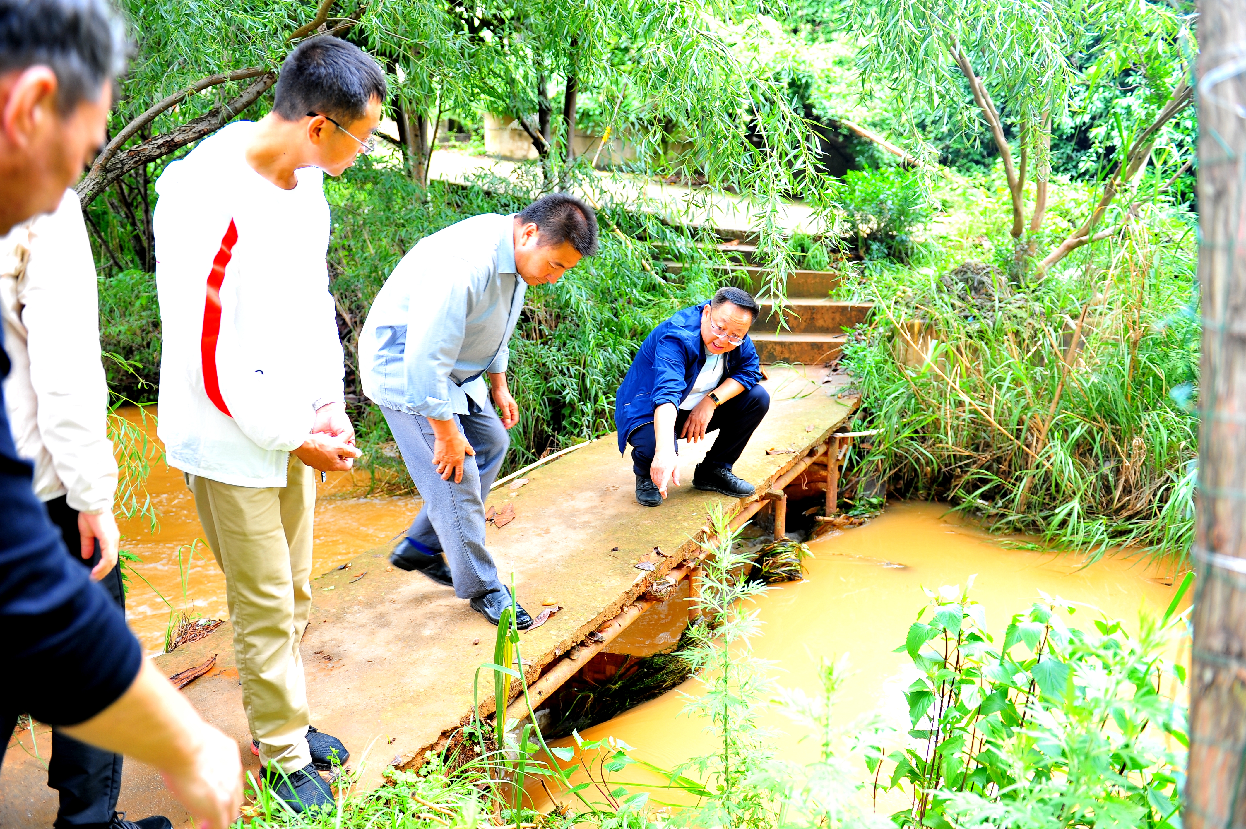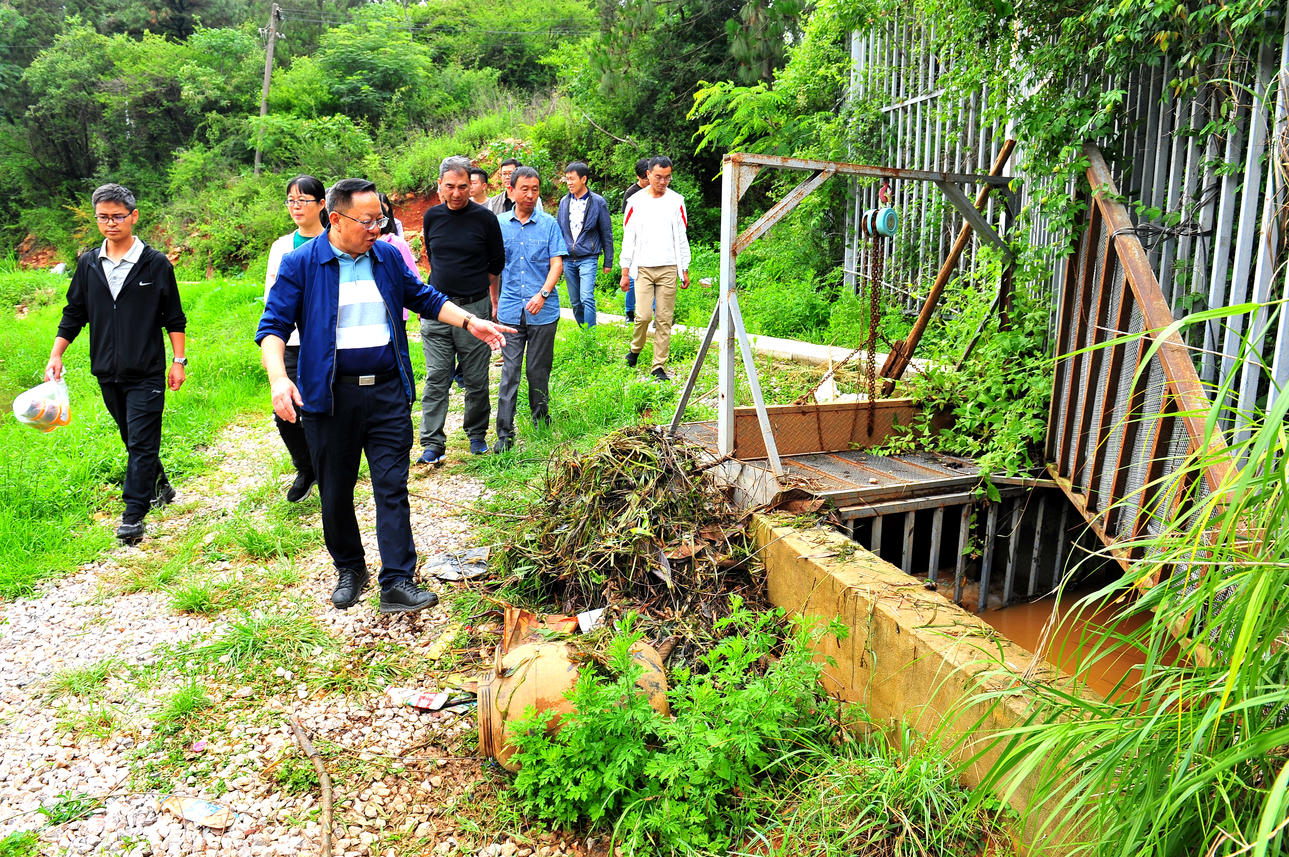 查看鱼塘泄洪渠