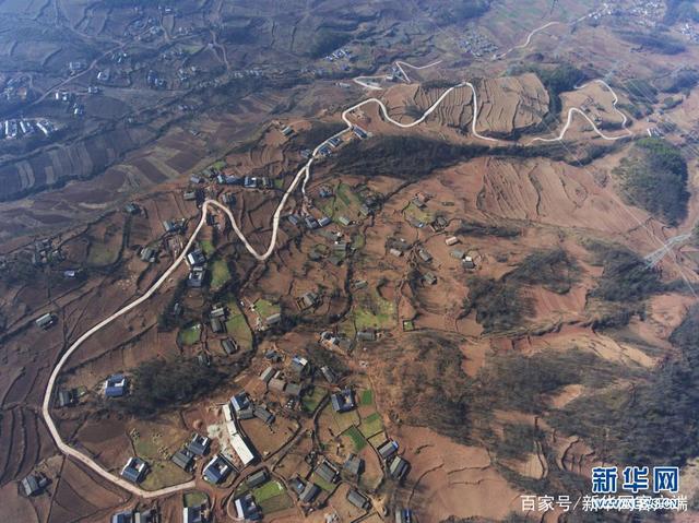 这是四川省凉山彝族自治州美姑县四峨吉村约6公里的道路硬化项目(2017年2月12日摄,无人机照片)。2015年8月,蒋富安由凉山州审计局派到美姑县九口乡四峨吉村任驻村第一书记,2016年8月22日因劳累猝死,年仅26岁。新华社记者 刘坤 摄