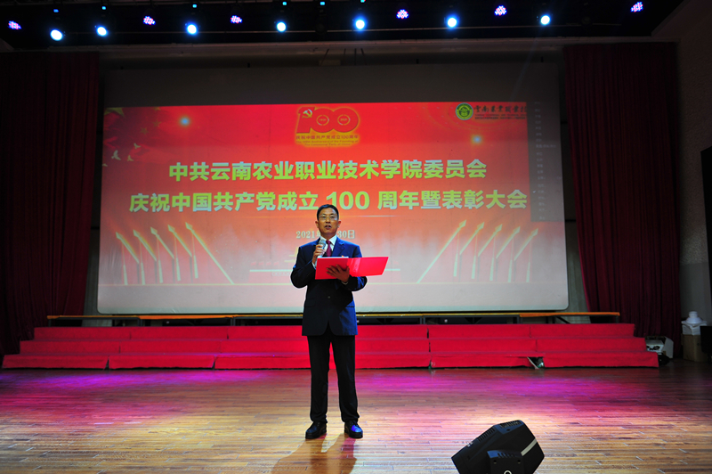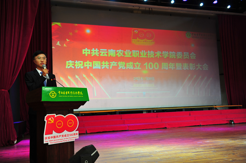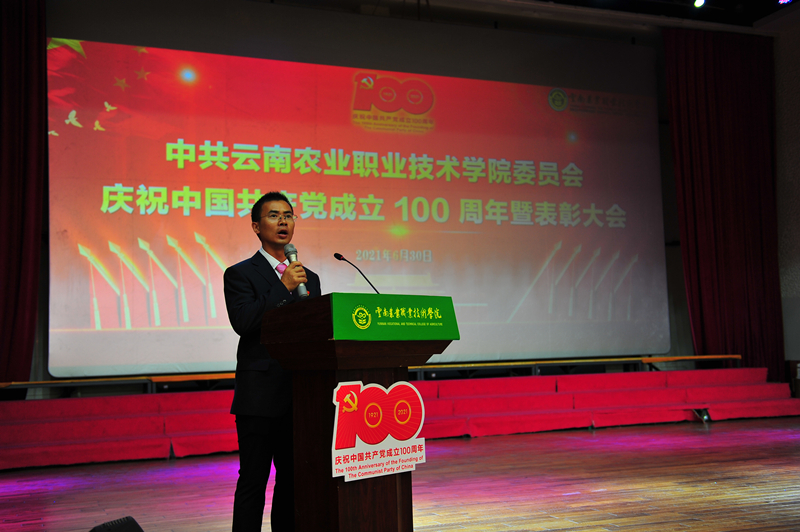 会上,党委书记崔金赋同志代表学院党委向获 “光荣在党50年”纪念章的老党员、受到表彰和获奖者的师生们表示热烈祝贺。并带领师生共同回顾党的百年奋斗历程,回顾best365中国官方网站在党的领导下不断发展进步的办学历程。他指出,本次会议既是一次表彰先进、鼓舞斗志的动员会,也是一次明确方向、再创佳绩的誓师会。学院今天所取得的办学成就,离不开中国共产党的正确领导,此次受到表彰的优秀个人和先进基层党组织,是我院师生践行不忘初心、牢记使命要求,充分发挥发挥先锋模范作用的优秀代表,全院党员干部和广大师生要牢记习近平总书记“以立德树人为根本,以强农兴农为己任”的殷殷嘱托,深入学习老党员们和本次受到表彰的优秀个人和基层党组织的宝贵精神,不断从百年党史中汲取奋进智慧、从榜样身上汲取党性力量,不忘初心、牢记使命,团结拼搏、接续奋斗,勇挑重担,再立新功,共同谱写学校“十四五”发展新篇章。一要学先进、争先进,大力弘扬先进人物精神。学院各部门和广大党员干部要以此次表彰为契机,扎实推进党史学习教育效果,汲取干事创业的强大精神动力,努力打造“有爱心、有灵魂、有血性、有本领”的四有团队。二要抓基层、强基础,切实打造一流党支部。各基层党支部进一步强化责任担当,按照“能力过硬、发展过硬、服务过硬、作风过硬”的要求,把支部建设好,把作用发挥好,持续增强基层党支部的战斗堡垒作用;要教育引导党员干部时刻牢记自己的第一身份共产党员,第一职责是为党工作,切实发挥党员先锋模范作用。三要抓团结、强效果,最大限度凝聚发展合力。学院各项工作都到了攻坚克难的关键时期,各部门要进一步强化团结协作,勇于克服困难,勇于解决问题,真抓实干,最大限度凝聚科学发展,加快发展的强大合力。