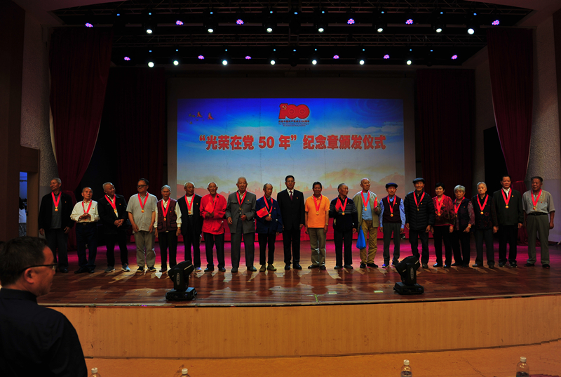 为在党50年的老党员代表颁发“光荣在党50年”纪念章