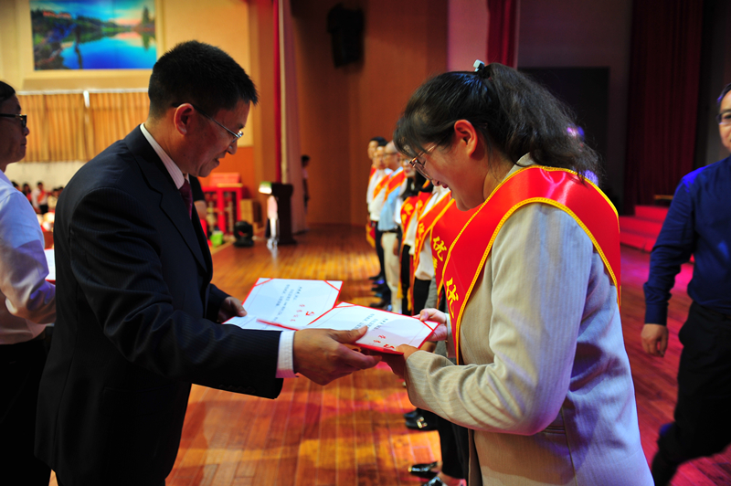 为获得“优秀党务工作者”称号党员代表颁发证书