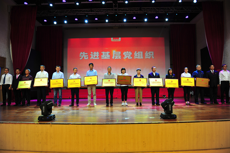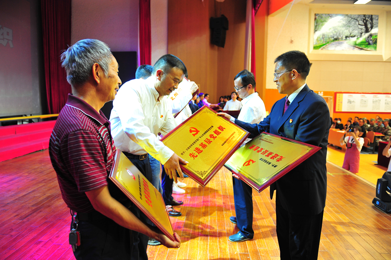 为获得“先进基层党组织”代表颁发奖牌