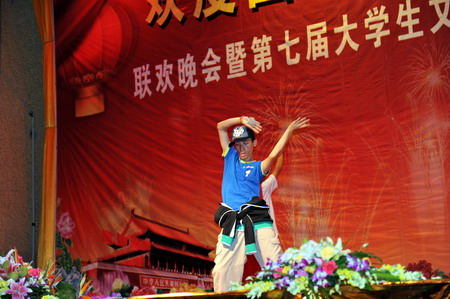 晚会以基础部体育老师洋溢着青春活力的“青春活力串烧”健美操首先登场,展示着我院师生朝气蓬勃、昂扬向上的精神风貌。泰国留学生的“椰子舞蹈”则给我们带来了异国的风情。晚会既有弘扬民族精神的武术表演,也有反映我国多民族纷繁异彩的彝族舞蹈“阿细跳月”、藏族舞蹈“游子情人”,也有青年学子喜爱的流行歌曲演唱;李永华老师一曲深情的“母亲”感染了全场的每一位观众,富有欧美情趣的舞蹈“B--BOX”和“爵士舞”把晚会推向高潮。晚会的欢笑声、赞美声和掌声此起彼伏,伴随着曼妙的音乐经久不息,