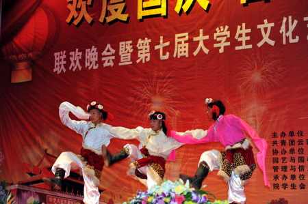 学院团委经过精心筹备,认真策划,晚会编排得紧凑而精彩,组织十二个各有千秋的节目来庆祝国庆佳节,来迎接五湖四海的新同学,给新同学带来了视听的饕餮大餐!同时,广大新老同学欢聚一堂共同庆祝伟大的祖国繁荣昌盛!(党委宣传部供稿)