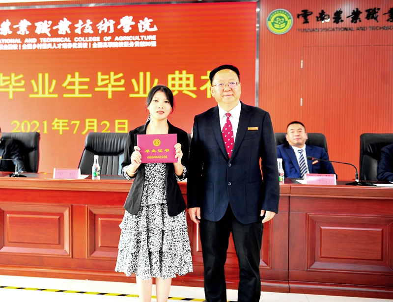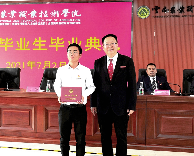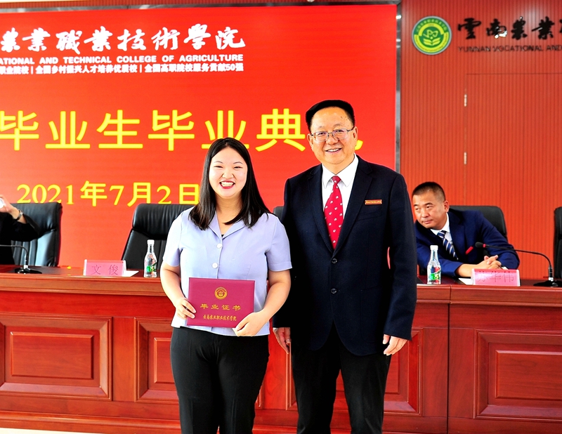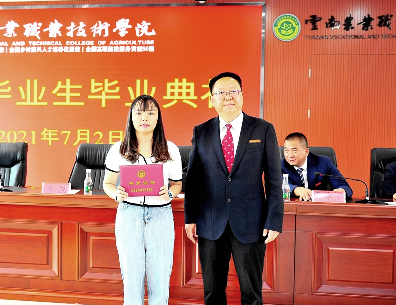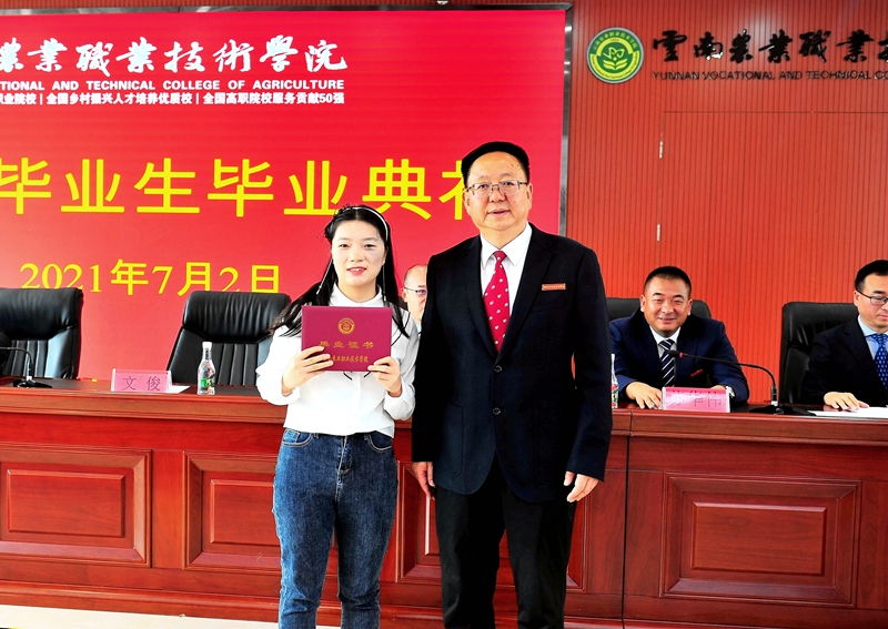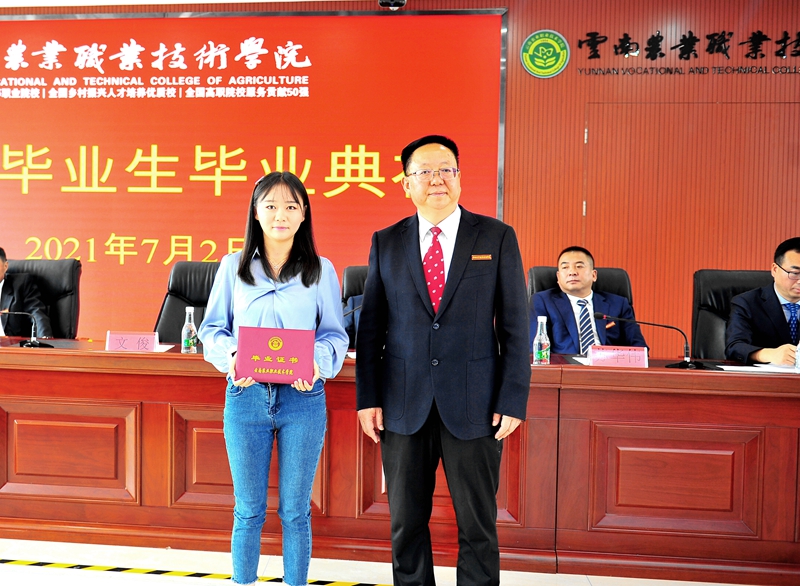 大会上,文俊院长为2021届毕业生代表颁发毕业证,并与毕业生代表合影留念。