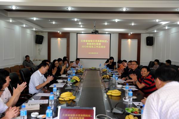 会议强调,联盟单位形成的通过召开联席会议共同协商、讨论研究重大事项的工作机制,在2013年的单独招生考试工作中成效显著,收到了事半功倍的效果,今后将作为联盟的一项制度长期加以坚持。2013年联盟首次实施单独招生,赢得了开门红,要进一步总结经验,为明年开展单独招生考试工作提供借鉴。要继续修订完善2013年制定的相关文件,作为明年开展单独招生工作的规范性、指导性文件。文化知识机考系统和准考证打印系统要根据今年的考试情况完善功能需求,明年继续使用。要加强联盟的进一步合作、优势互补,挑选各自的强势专业印制统一的招生简章,加大宣传力度。要积极向省教育厅、省招生考试院反映。解决扩大招生计划比例、“三校生”类别受限、进入云南招考频道宣传、与昆明冶金高等专科学校等其他三所国家级示范性高职院校同时开展单独招生、考试等问题。