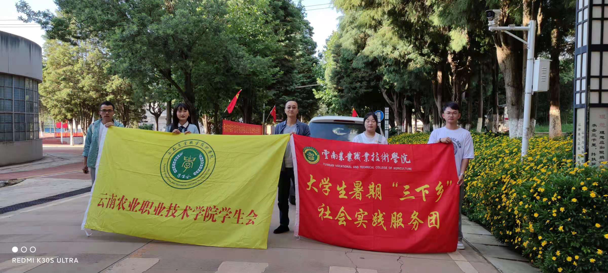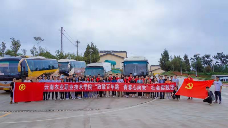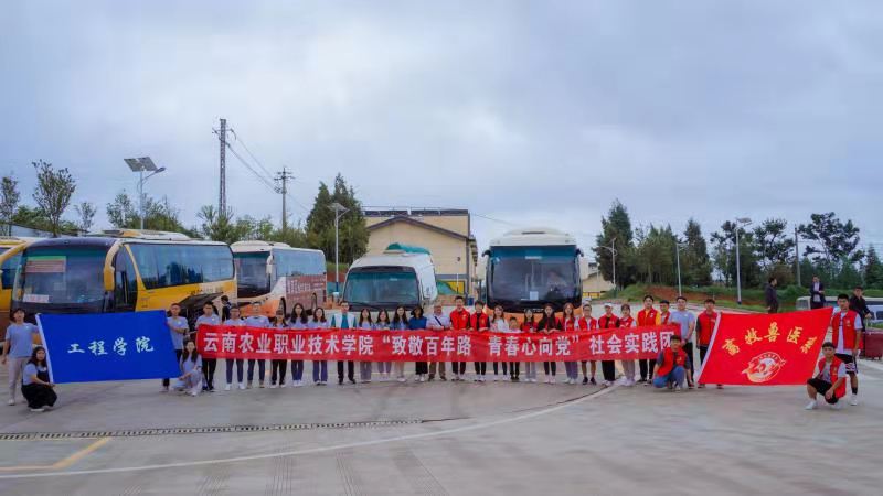 2021年7月9日,“致敬百年路,青春心向党”社会实践团第一支队伍共17名师生前往云南省禄劝县普渡河铁索桥参观学习。路途中,同学们共同重温了毛泽东主席的《七律.长征》:“红军不怕远征难,万水千山只等闲。五岭逶迤腾细浪,乌蒙磅礴走泥丸。金沙水拍云崖暖,大渡桥横铁索寒。更喜岷山千里雪,三军过后尽开颜。”通过这首著名的诗词,重温了可歌可泣的长征故事。