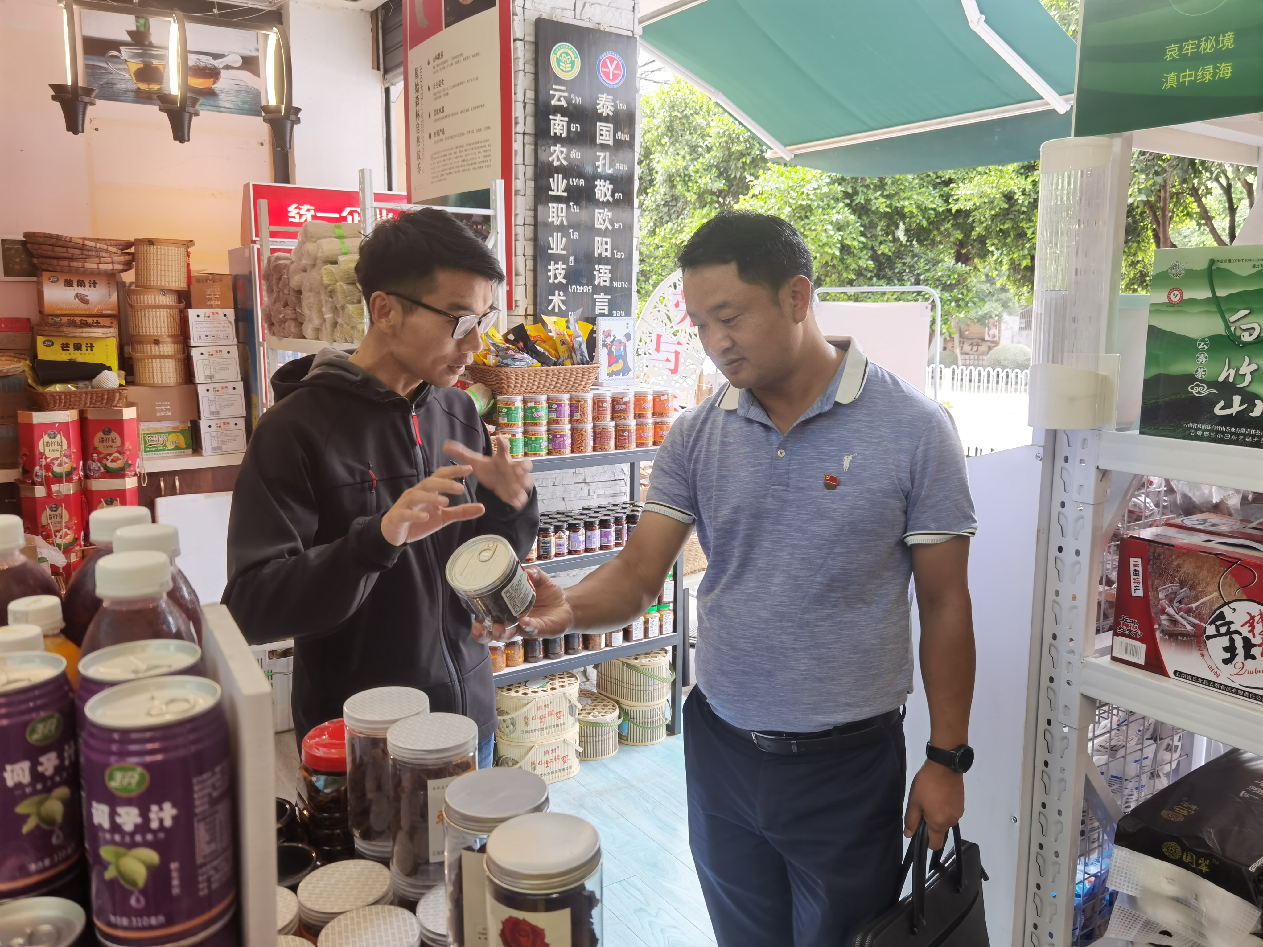 沈亮均处长听取我院产教联盟少数民族农特产品销售情况介绍