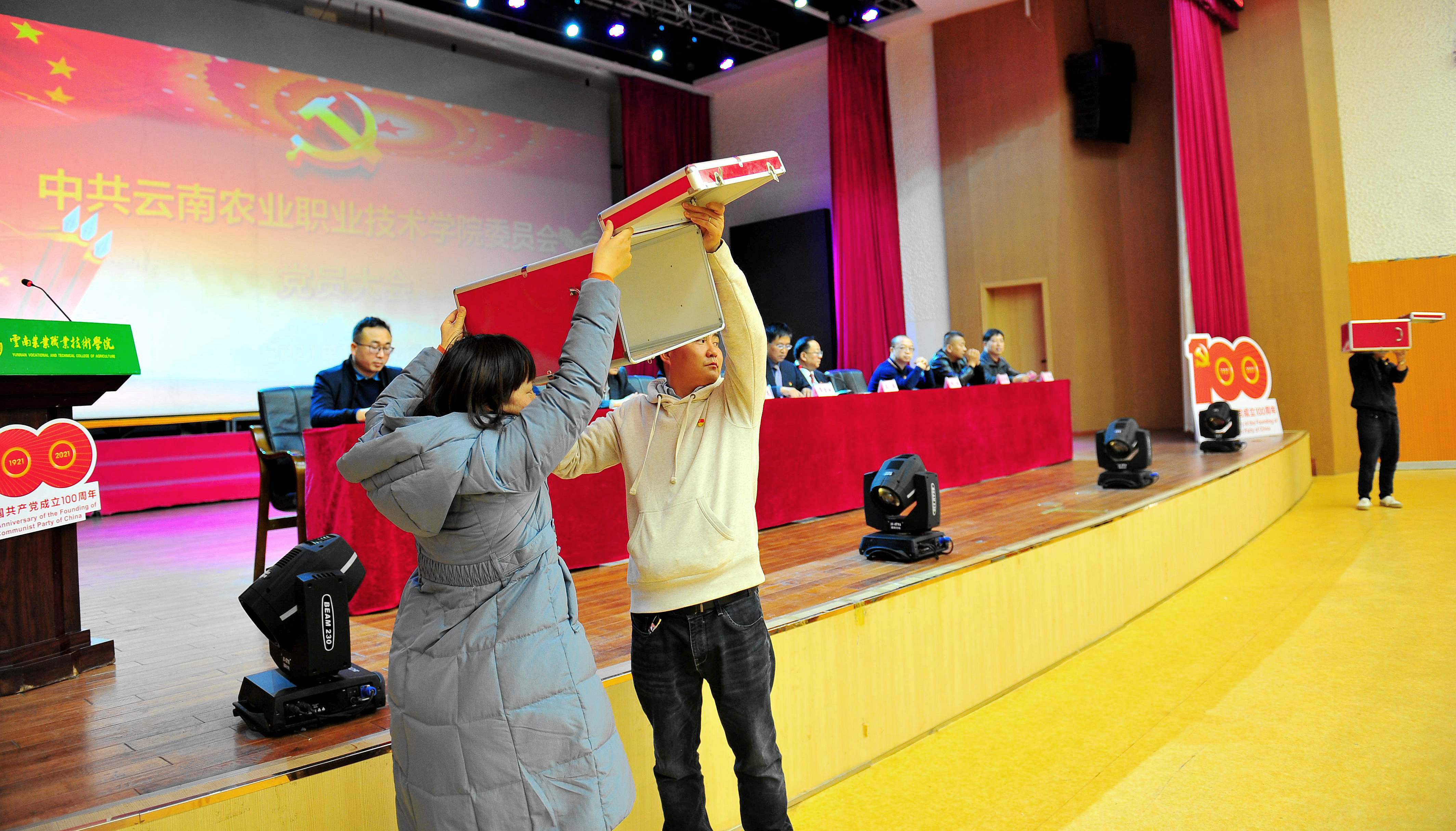 大会在全体同志起立齐唱中华人民共和国国歌/《义勇军进行曲》的歌声中拉开帷幕。正式选举前,大会全票通过《中共best365中国官方网站委员会党员大会选举办法(草案)》。大会主持人介绍省委教育工委原则同意出席中国共产党云南省第十一次代表大会代表候选人预备人选基本情况后,全票通过学院出席中国共产党云南省第十一次代表大会代表候选人预备人选,经到会党员集体酝酿,确定代表候选人。本次大会通过了总监票人和监票人名单。选举工作正式开始后,在监票人检查票箱,工作人员分发选票并销毁多余选票等流程后,采用无记名投票、差额选举的方式进行选举,与会党员认真填写选票,投上了自己的一票。