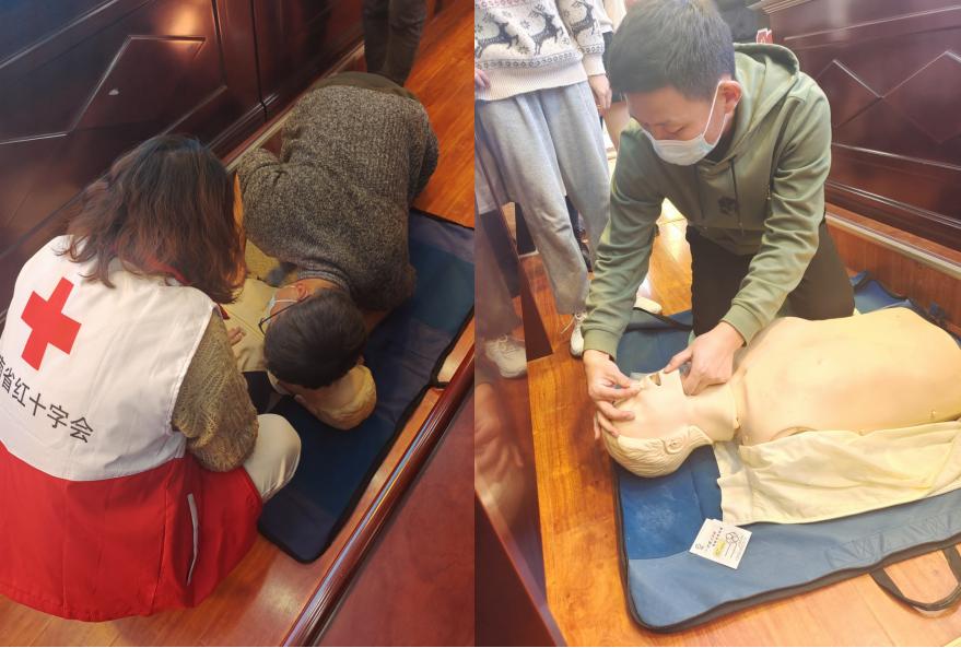此次培训邀请云南省红十字应急救护培训中心张艳丽讲师,采用理论知识讲解和示范操作相结合的方式进行培训。张老师首先对红十字会进行了简要介绍,通过PPT课件讲解了心肺复苏理论、AED自动体外除颤仪的使用方法、创伤救护常见意外伤害处理等急救知识,同时还向我院老师们详细讲解展示了止血包扎、调整体位、人工呼吸、胸外心脏按压等现场急救技能,鼓励大家在人体模型上动手操作,老师们纷纷“上阵”进行实操演练,张老师进行现场指导。整个培训过程注重将救护知识与救护技能相结合,以实际操作为主,让大家进一步了解应急救护基本知识,掌握心肺复苏和创伤包扎等急救技能。