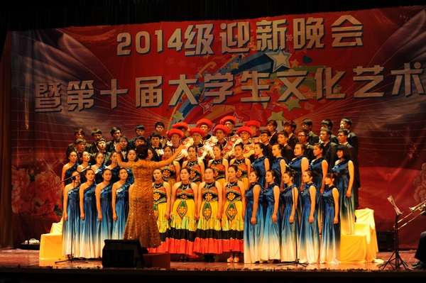 2014年9月23日晚上7点30分,学校在小哨校区大礼堂隆重举行2014级迎新晚会暨第十届大学生文化艺术节开幕式。本次晚会由党委宣传部、院团委主办,各二级学院团总支协办。李永忠院长出席晚会并致辞,出席晚会的还有学校副书记赵刚,副院长何明东、俞浩,党委宣传部部长冯志宏、学生工作处处长周诚、保卫处处长李昆、以及党院办、基础部、各二级学院的领导,部分教师、辅导员、班主任,部分学生等近900人汇聚一堂参加了晚会。