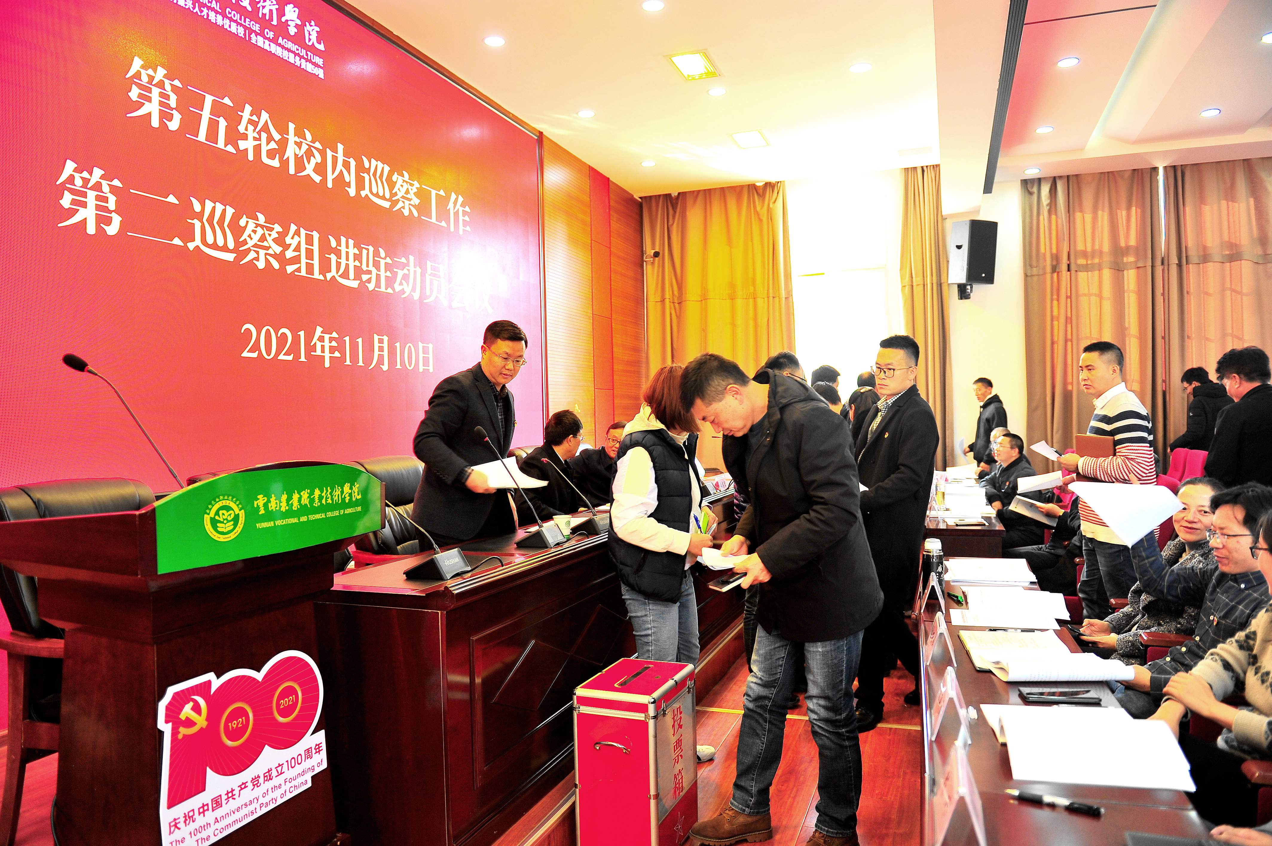 根据学院党委统一安排部署,第五轮校内巡察第二巡察组将对互联网技术学院党总支、创新创业学院党总支、机关党总支、离退休党总支开展巡察。11月10日,在小哨校区嘉锐楼104报告厅召开了进驻动员会。巡察工作领导小组成员,党委巡察办主要负责人,巡察组全体成员;被巡察党政部门副科及以上干部,党总支书记、委员,党支部书记、委员、职工代表参加了会议。会议由机关党总支书记朱红锐同志主持。