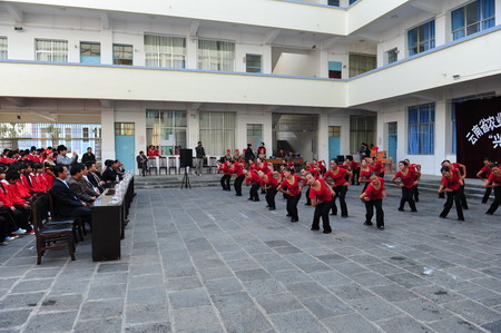 捐赠仪式后,彭志远院长等领导、嘉宾兴致勃勃地欣赏了盈江县高级职业中学师生表演的民族歌舞,并与演出师生合影留念。