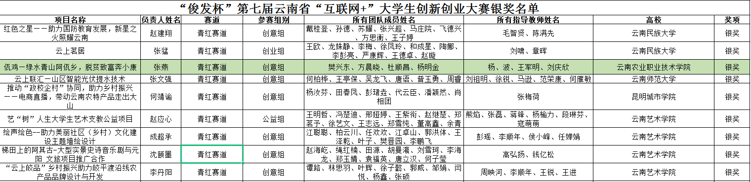 通知中心近日,第七届云南省“互联网+"大学生创新创业大赛圆满结束并公布了获奖名单。我院由杨波、王军明、刘庆欣等三位老师共同指导的,樊兴东、方晨晓、杜顺昌、杨明金等四同学负责的参赛作品:“秘境佤鸡—绿水青山阿佤乡,脱贫致富奔小康”获“青年红色筑梦之旅”赛道银奖。据悉,该作品为本届比赛入围“青年红色筑梦之旅”赛道的唯一高职院校作品。