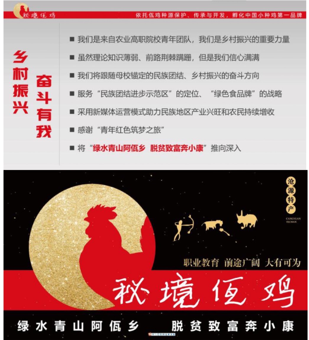“红色青年”在云农职·慧农时邦产教联盟的支持下,通过“青年红色筑梦之旅”的平台,应用互联网新思维,采用新媒体运营模式,带动示范着全校同学,共同打造了“秘境佤鸡”这个项目。